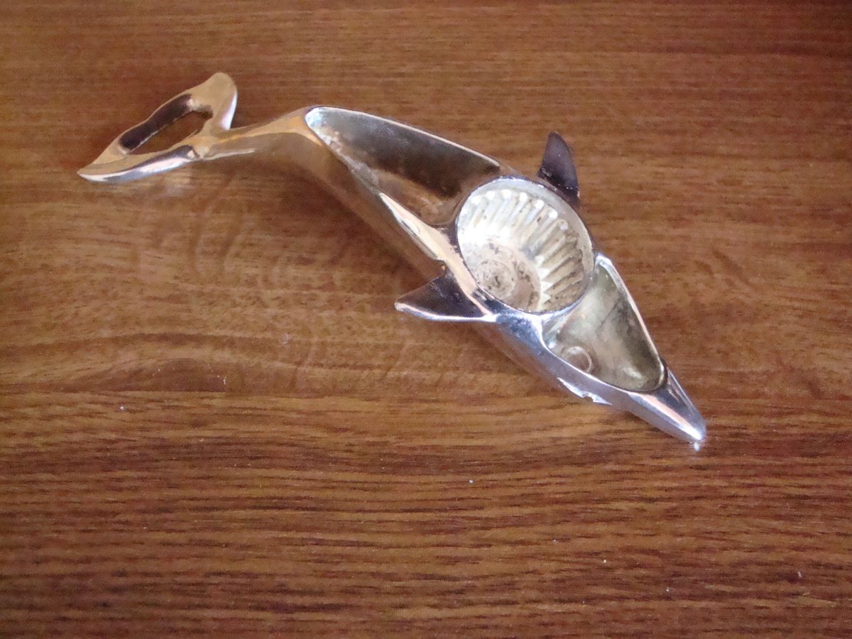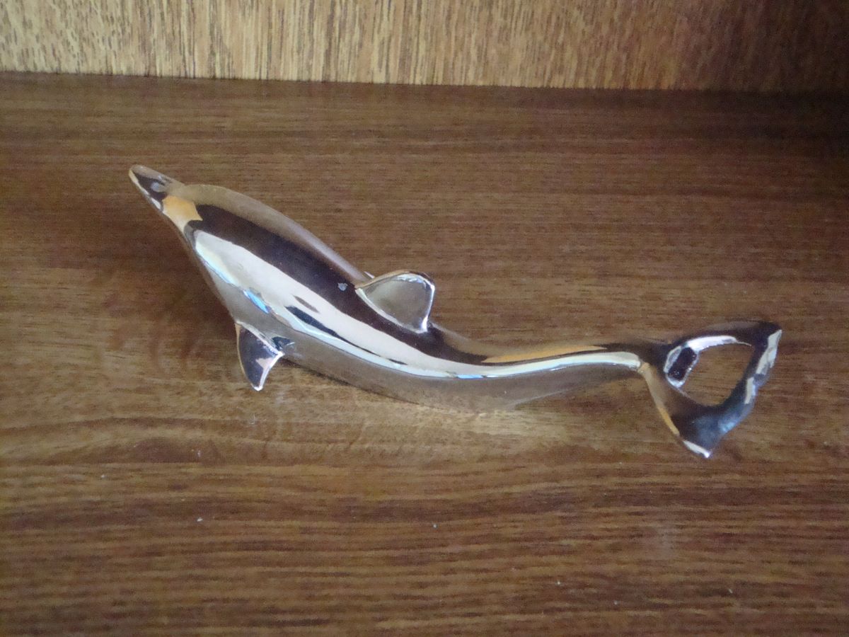 Decapsuleur vintage en métal chromé en forme de dauphin