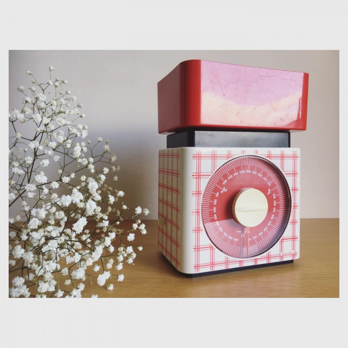 Cette adorable et plutôt peu commune Terraillon qui supportera jusqu’à 3kg de charge, est en bel état. Elle a conservé sa blancheur (les parties blanches ne sont pas jaunies), la tare fonctionne, juste un petit manque du dessin au dos et quelques petites traces d’usage sur le bol.