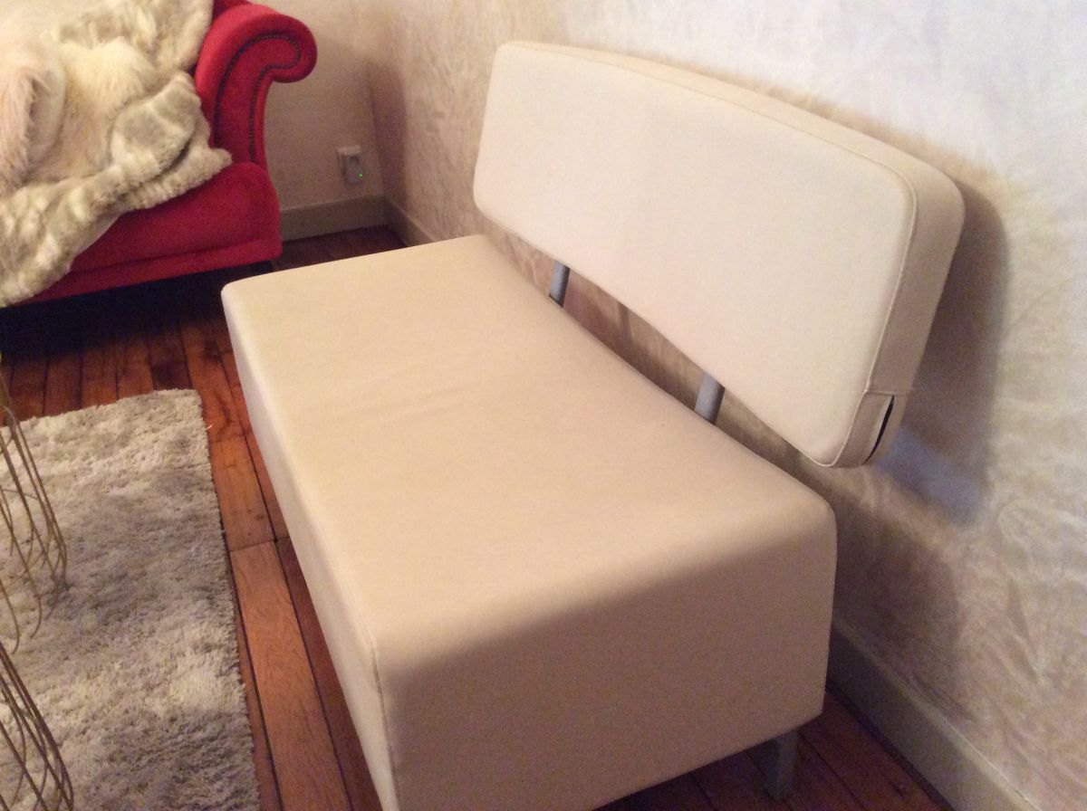 Petite banquette d un salon de coiffure et ancien fauteuil bac à champoing