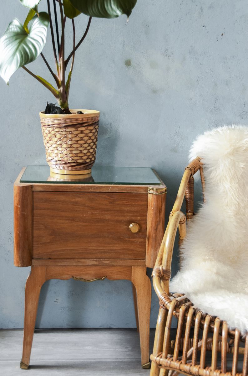 Table de chevet en très bon état. Bois massif. La glace est en bon état également.