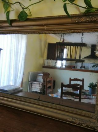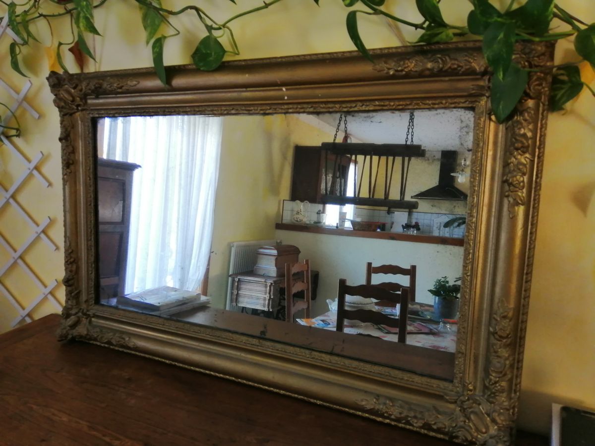 Miroir style 19 ème siècle aux contours bois de couleur doré. Bon état