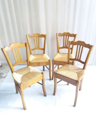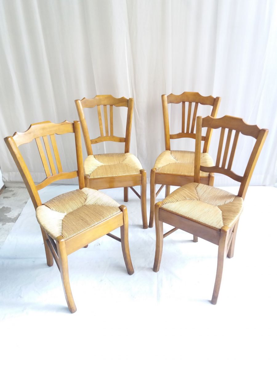 SERIE DE 4 CHAISES ANCIENNES PAILLEES