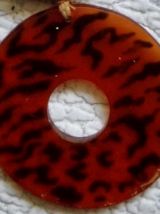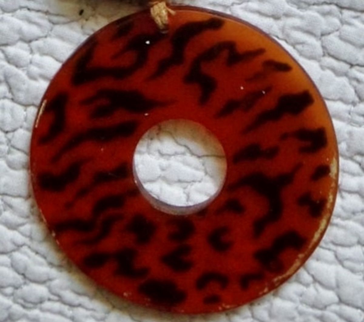 Long sautoir sophistiqué orné d'un pendentif en forme de disque a l'imprimé animalier.