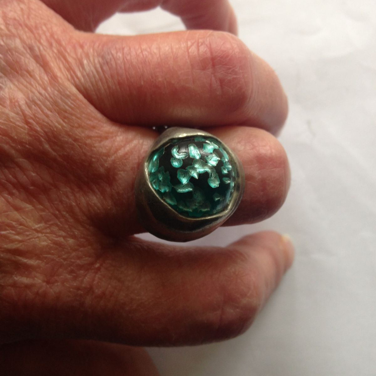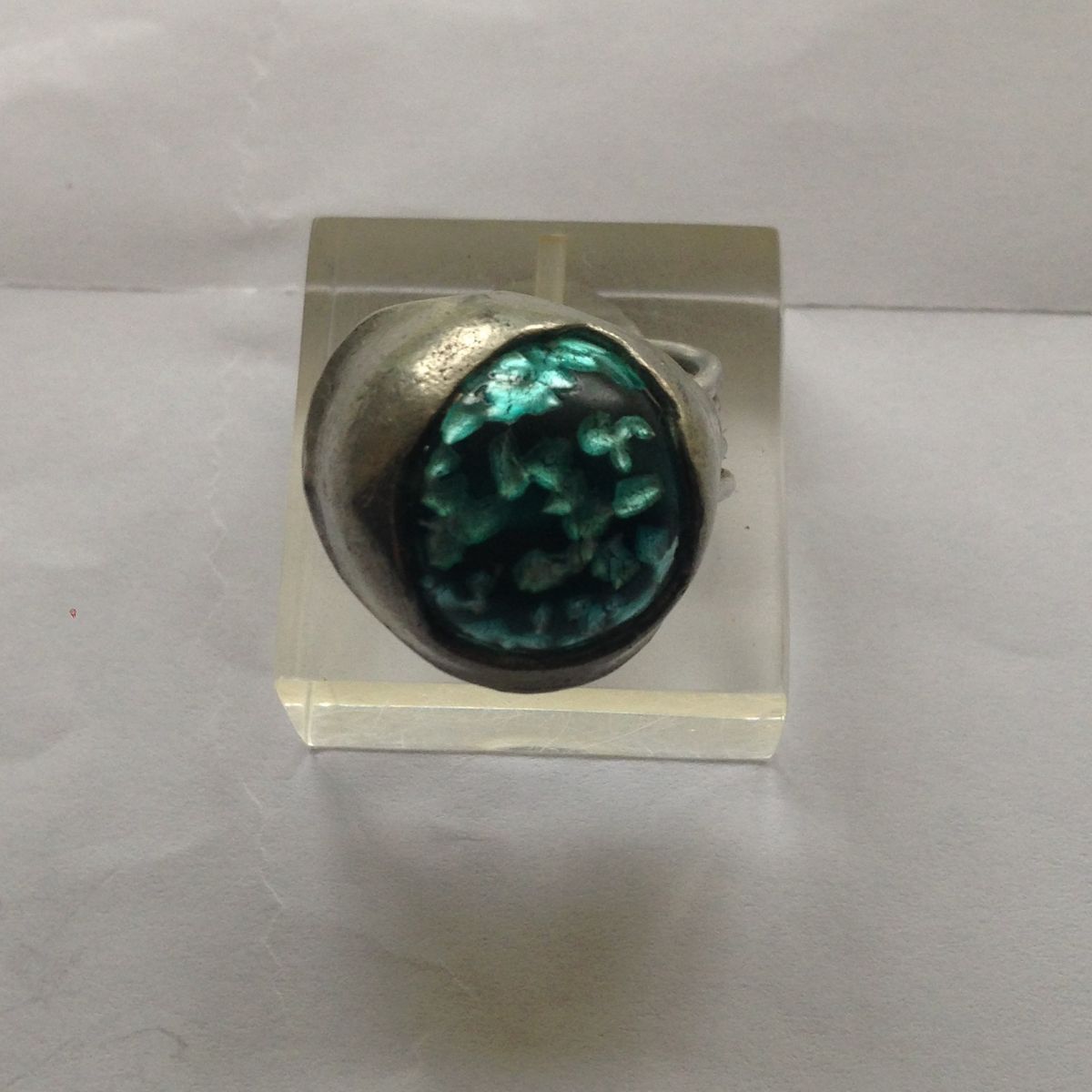 Je ne connais pas le nom de la pierre ni la matière de la bague. On dirait de l'argent mais sans certitude!!