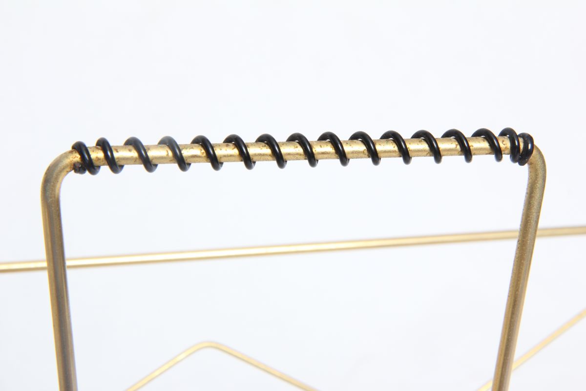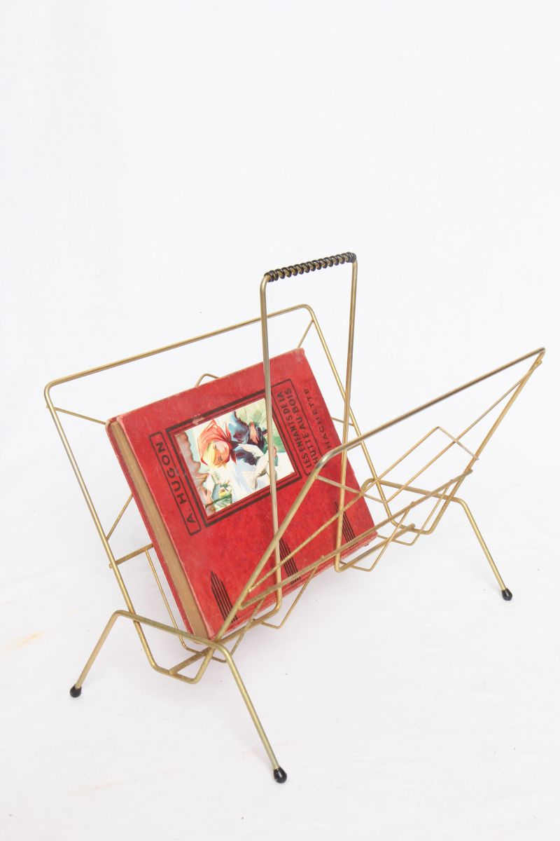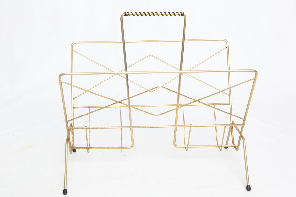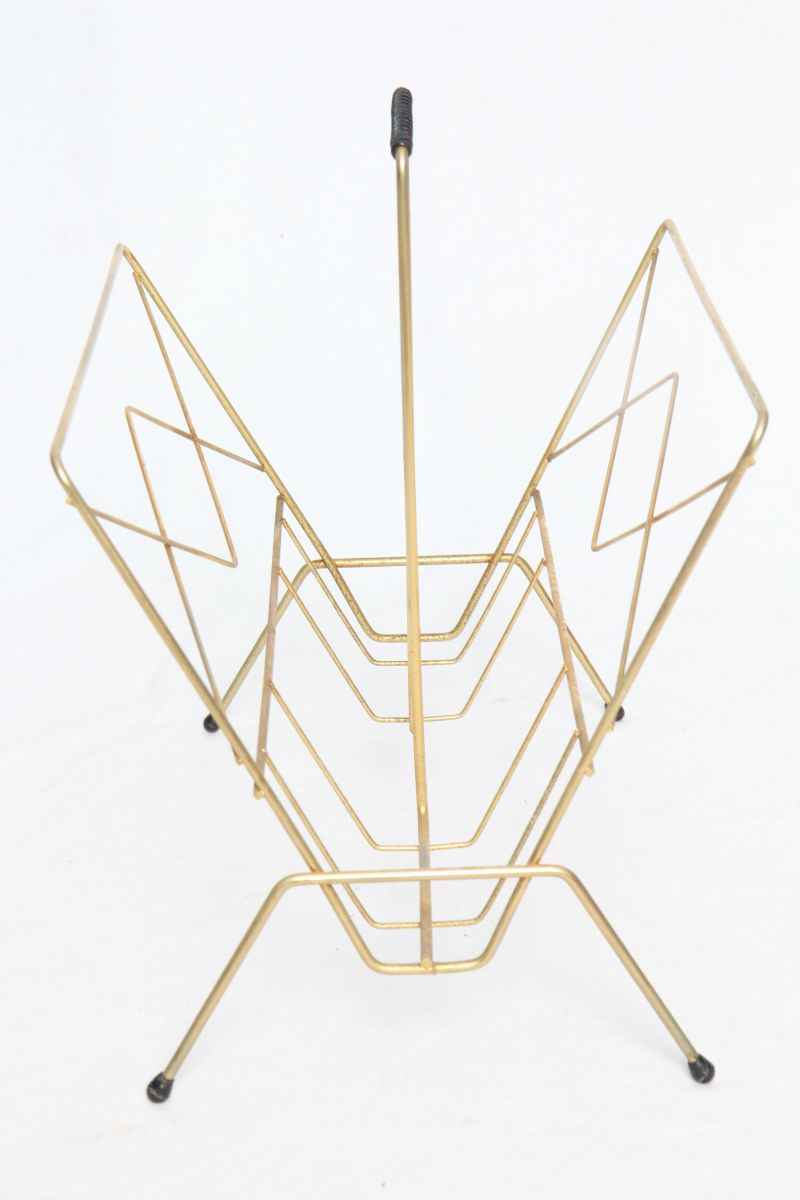 Porte-revues vintage en métal doré, poignée scoubidou noir.