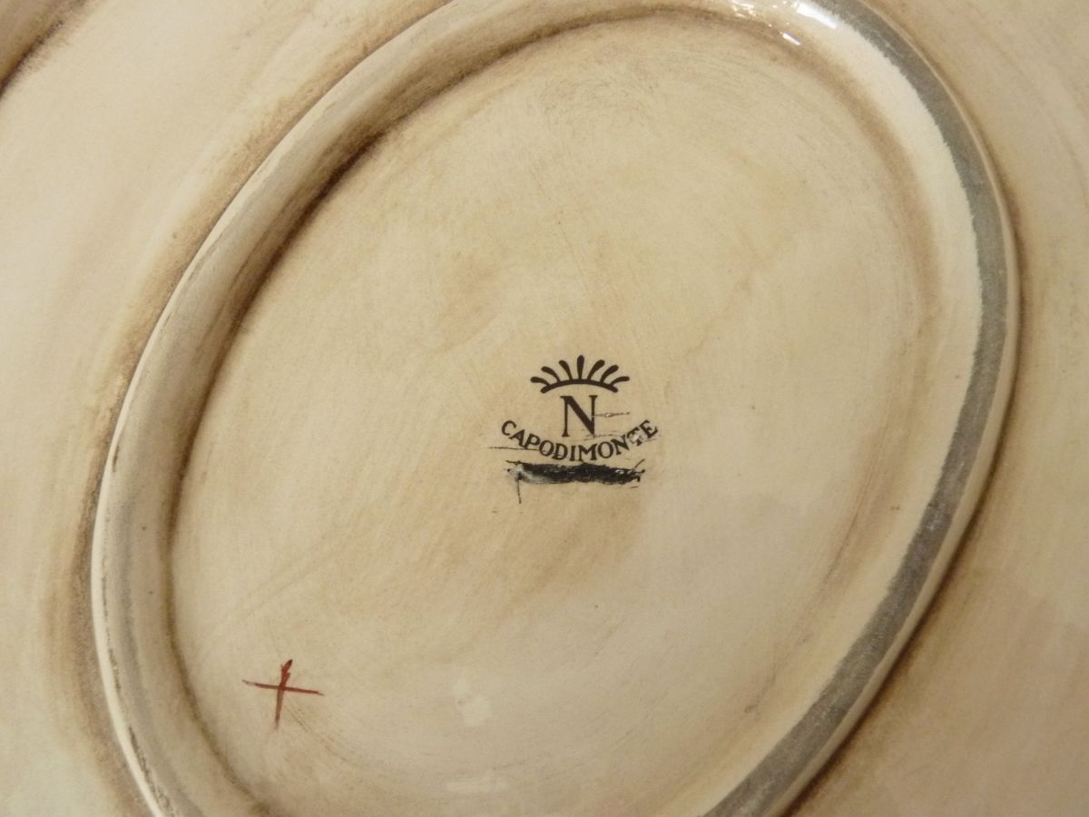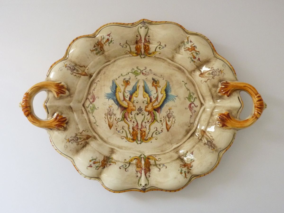 Plat, plateau de service en céramique peinte à la main, a 2 anses. Capodimonte