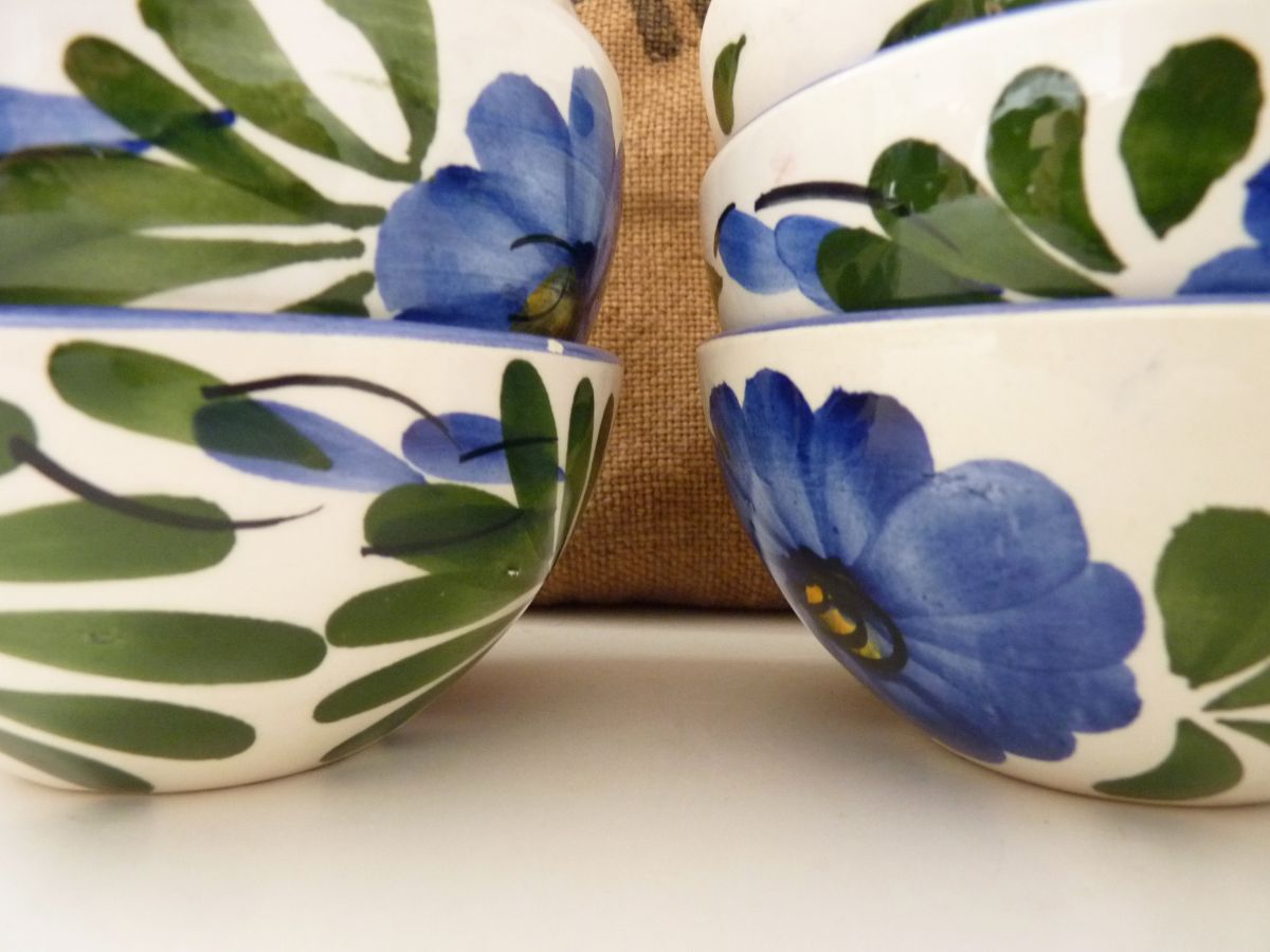 Lot de 6 bols en céramique à motifs floraux bleu et rouge