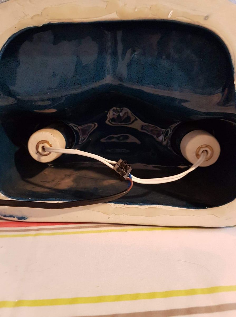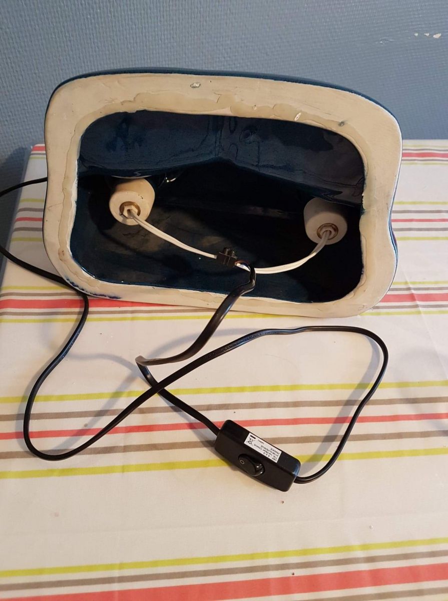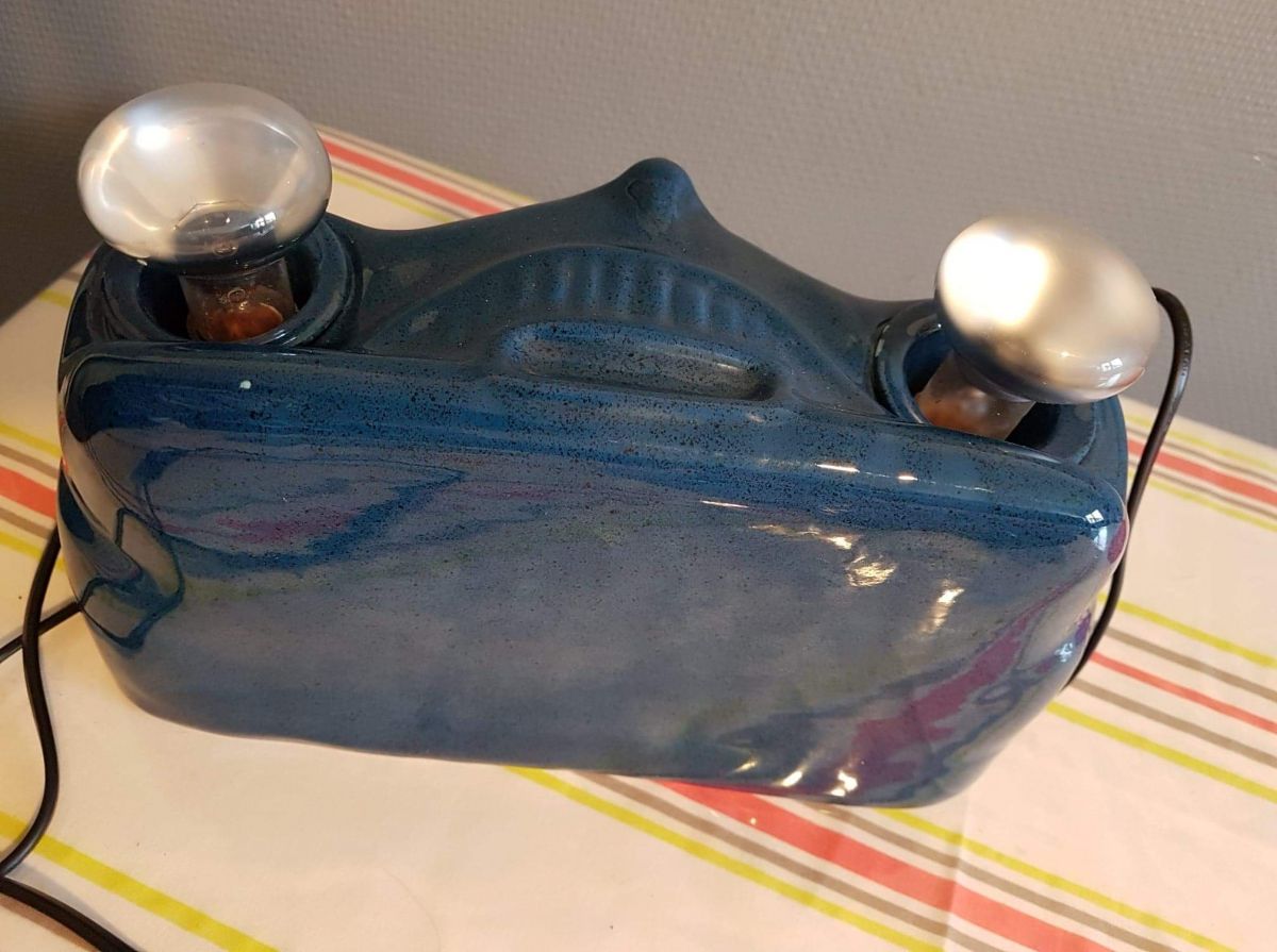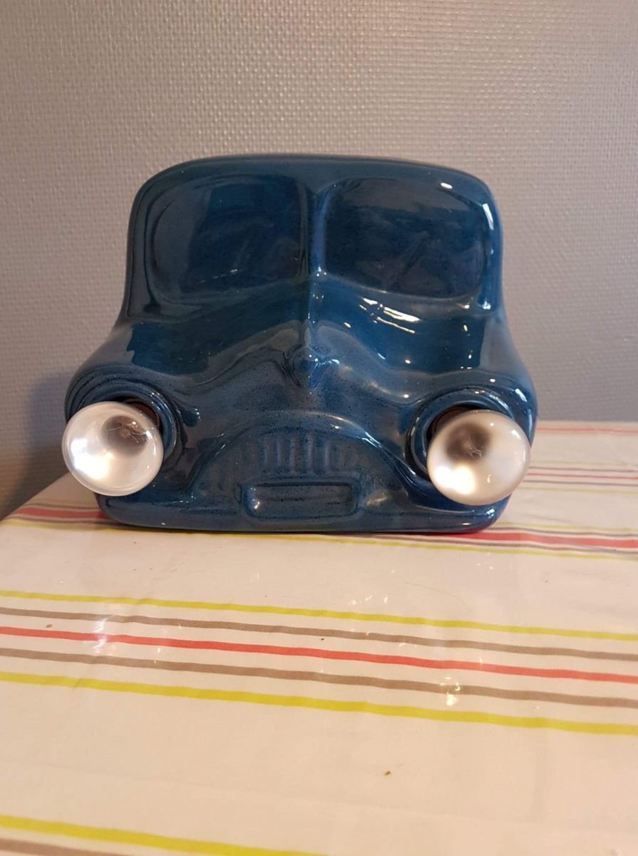 lampe vintage en céramique bleue en forme d'avant de voiture