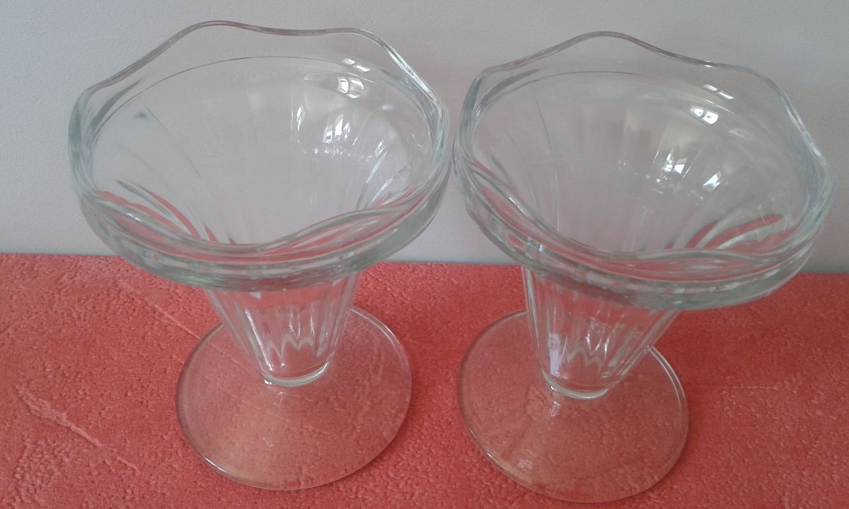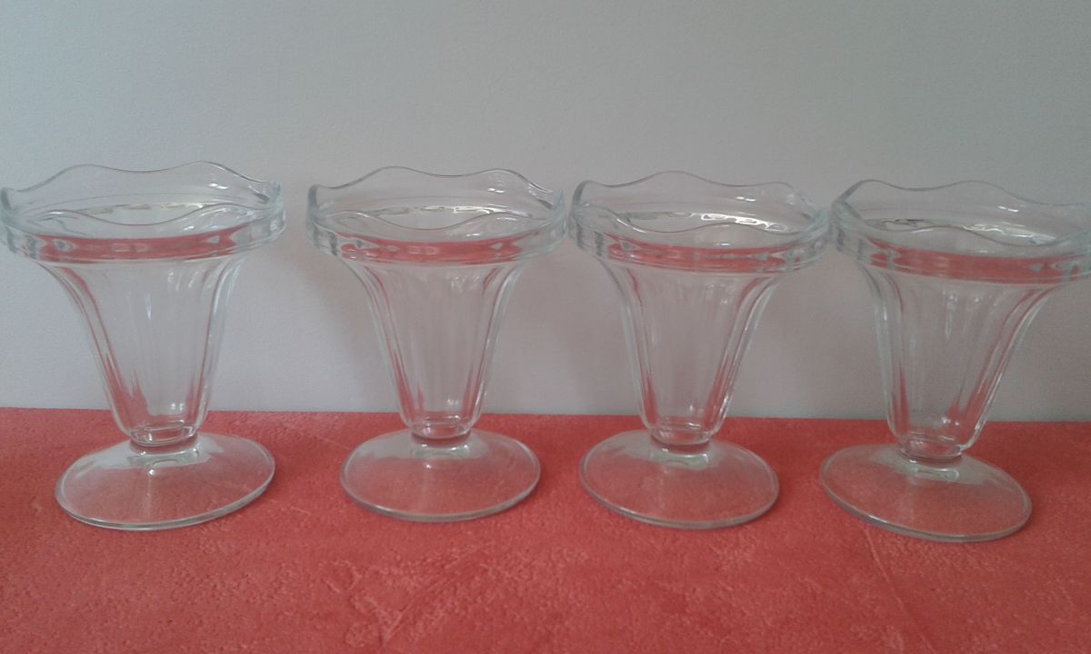 Quatre coupes à fruits anciennes en verre épais. Fabriquées en France et portant les numéros 6, 12, 13 et 29.