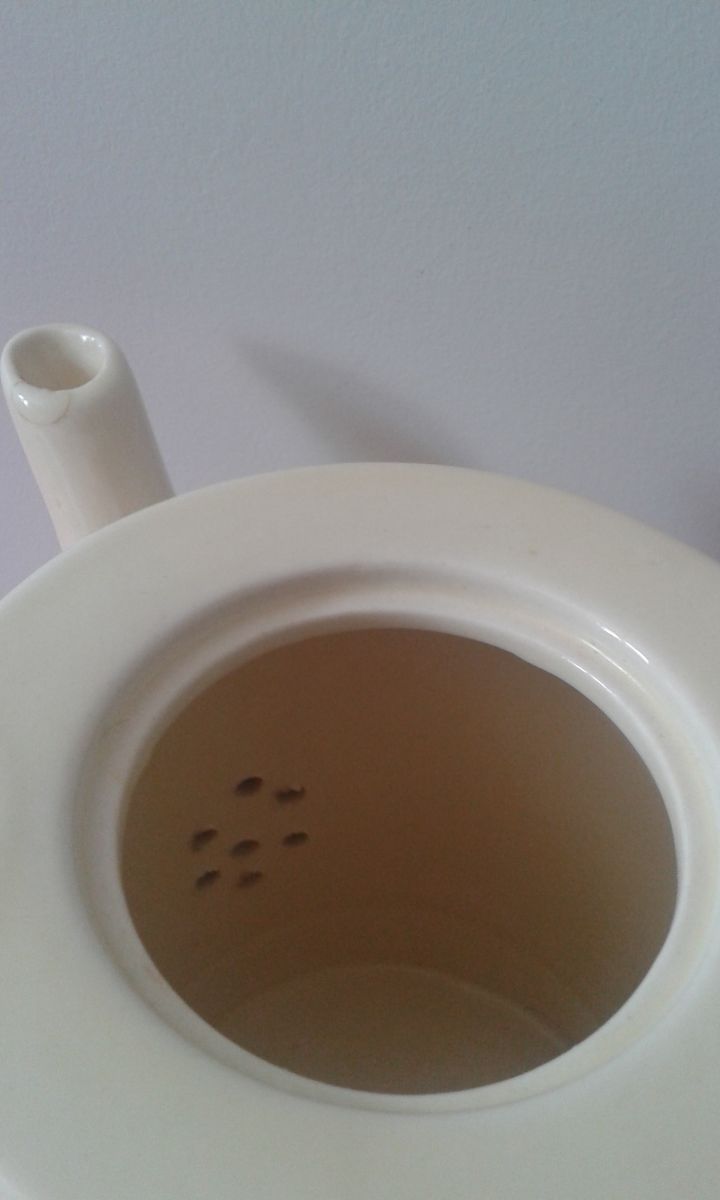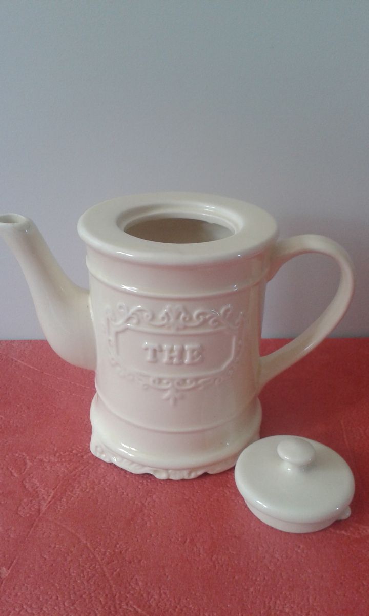 Jolie théière au design original en céramique de couleur blanc cassé.