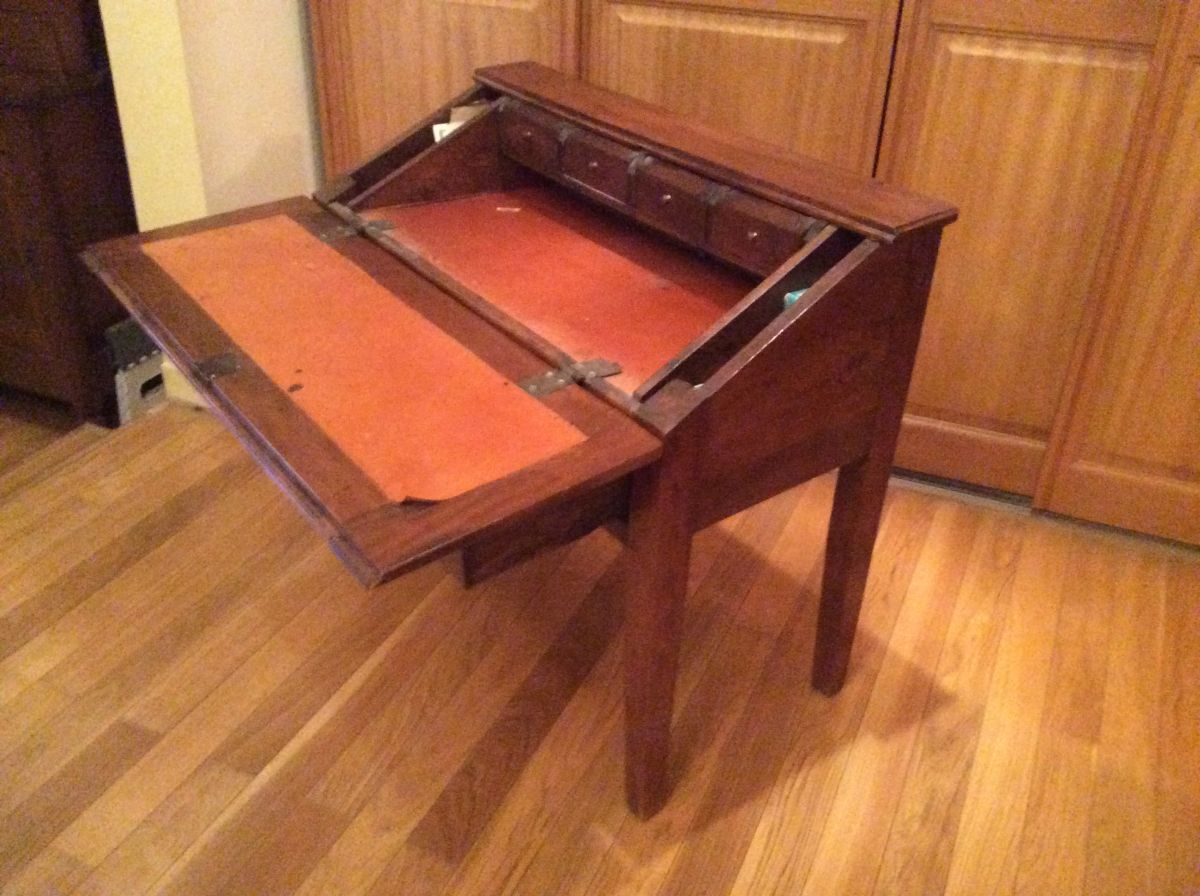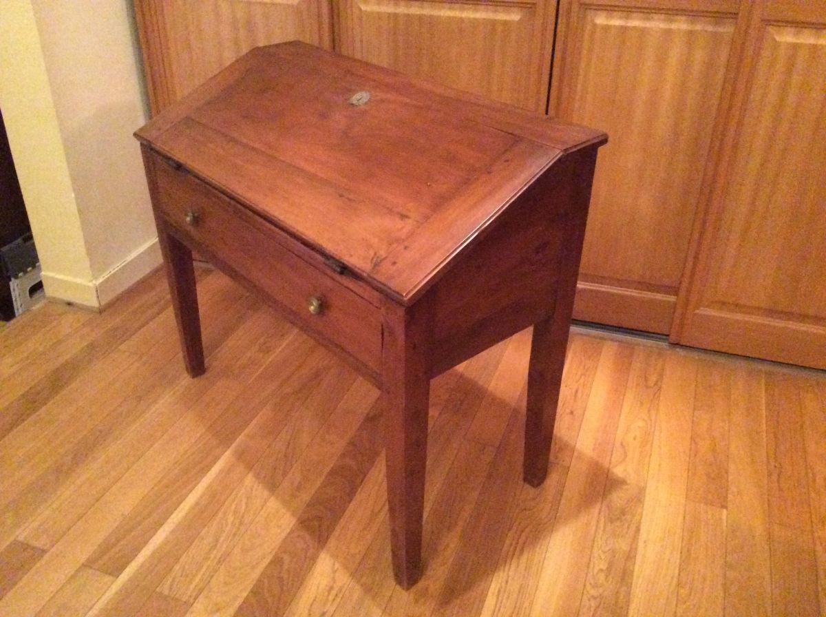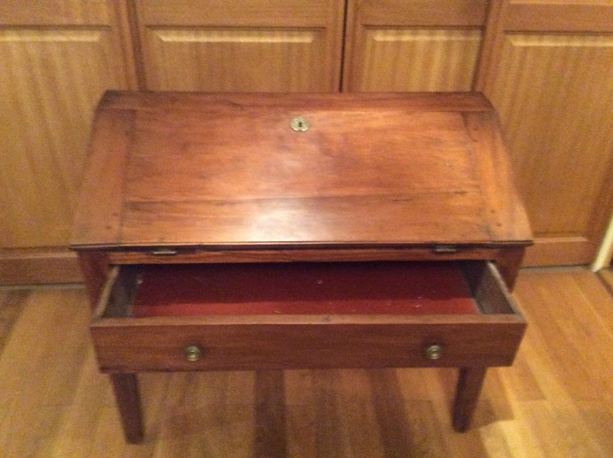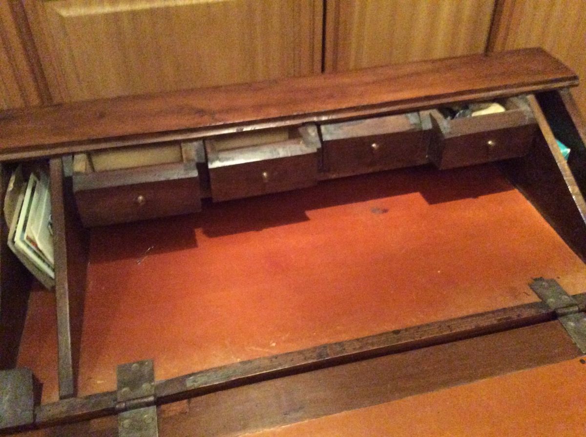 Grand tiroir central servant d’appui au couvercle pour former un bureau