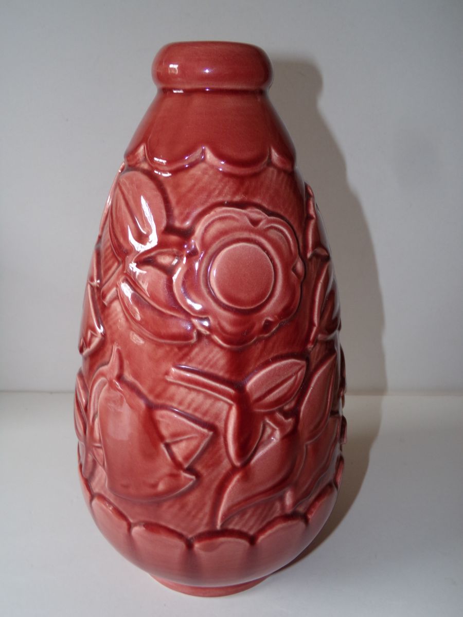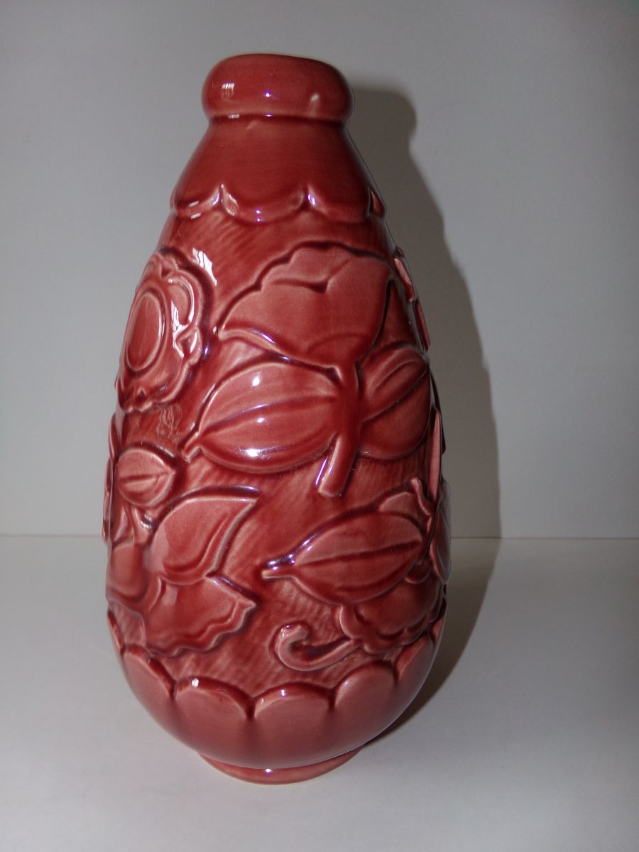 Vase en céramique rouge à décor de fleurs