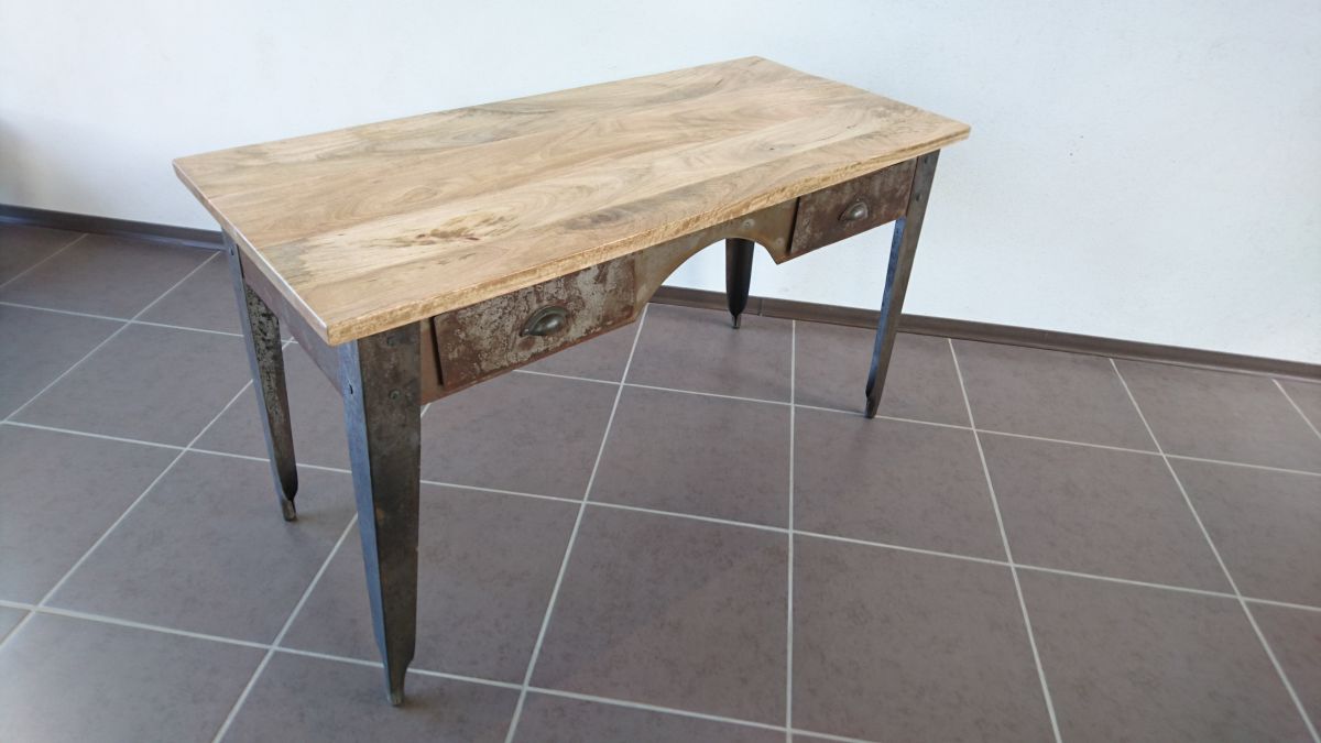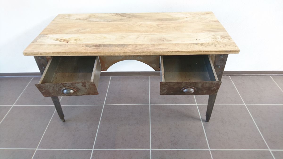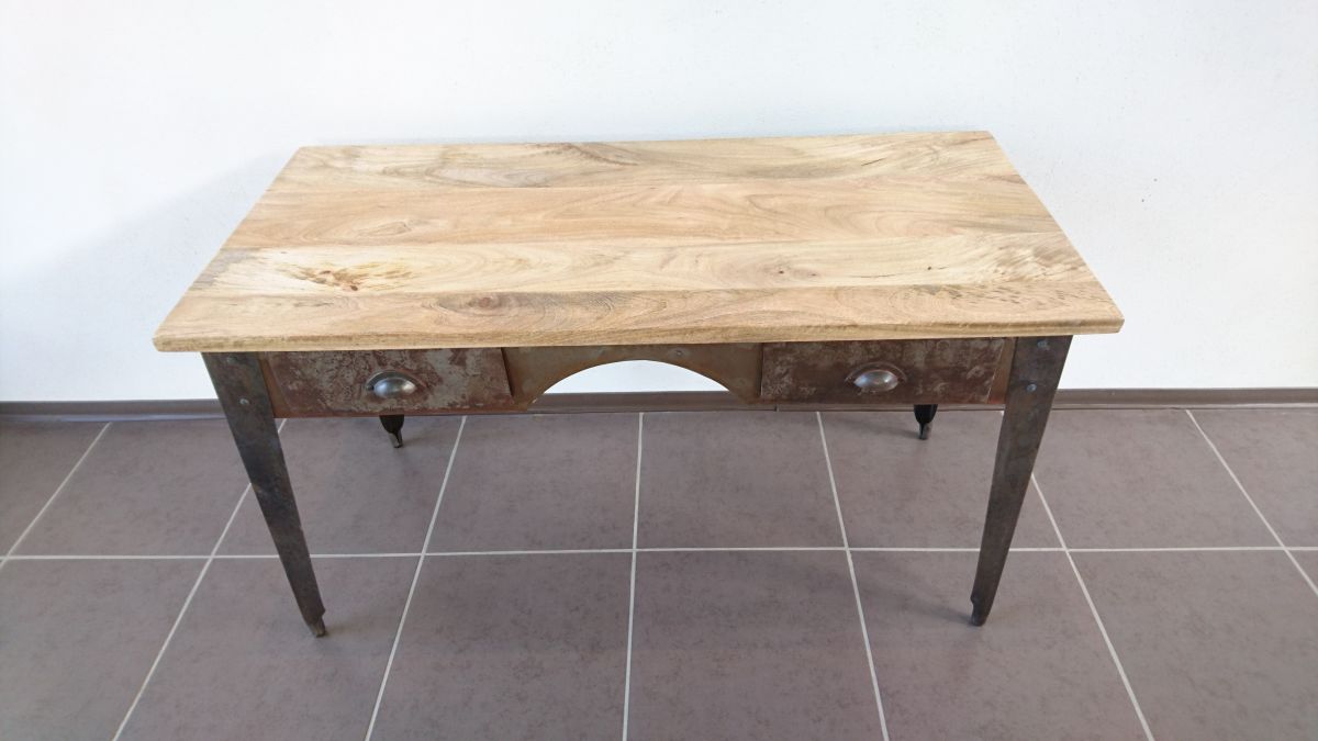Meuble de bureau au style industriel au design simple et fonctionnel. De conception massive, l'alliance de l'acier brut et du manguier massif lui confère un style authentique très actuel, ce bureau offre un confort d'utilisation optimal grâce à ses 2 tiroirs L 130 X H 10 X P 40