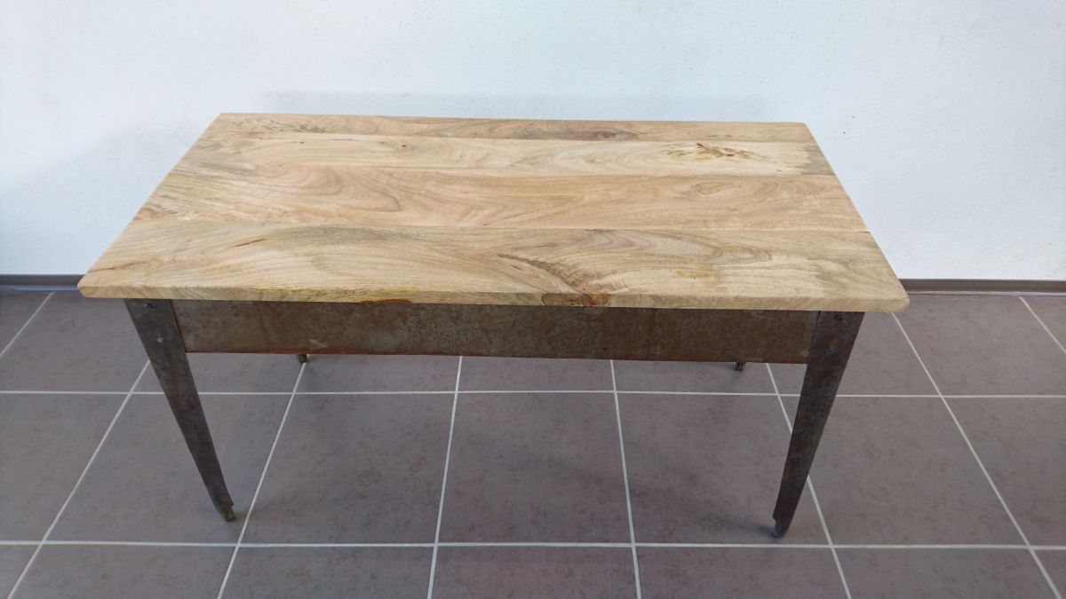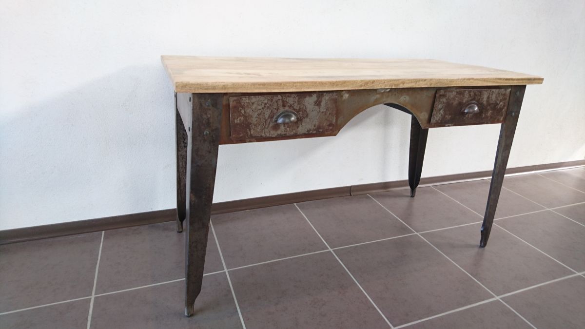 Sa patine, ses marques d'usures sont travaillées et résultent de soudures artisanales. L'aspect brut de ce meuble fait son style. En effet, il comporte des traces de conception comme des traces de soudures qui lui donnent un véritable esprit industriel.