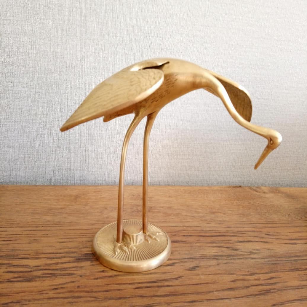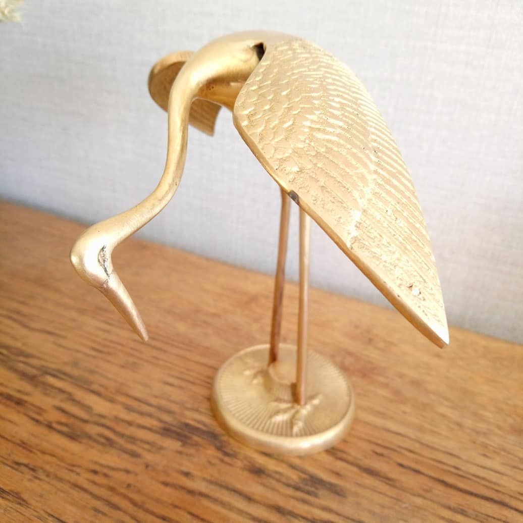 Héron en laiton des années 70, hauteur 19 cm environ.
