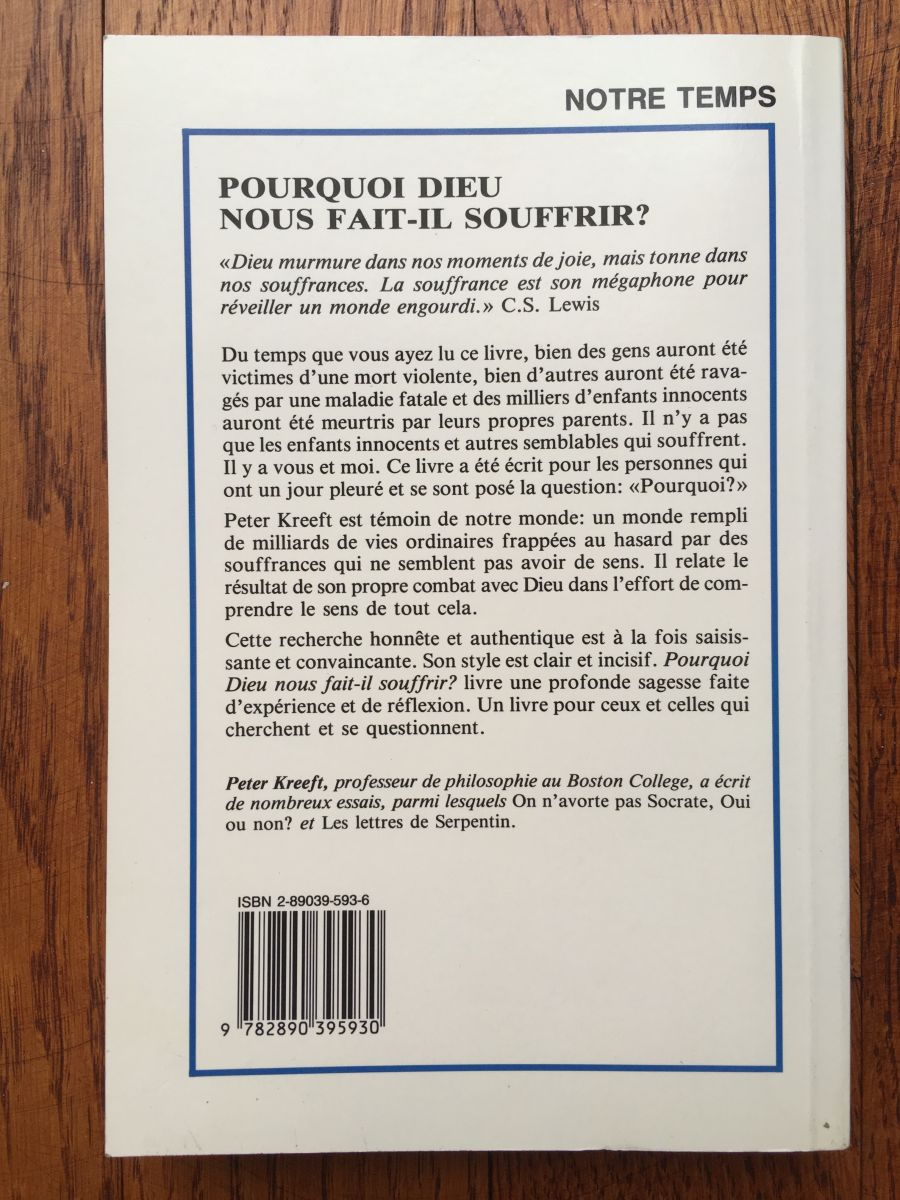 livre Pourquoi Dieu nous fait il souffrir ? Peter Kreeft