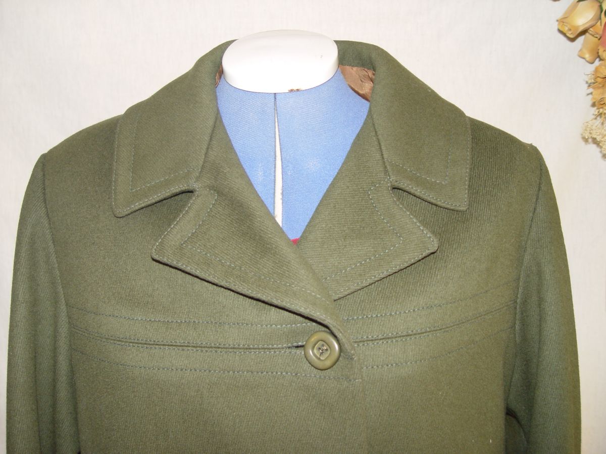 Manteau vintage de laine vert mousse taille 42/44