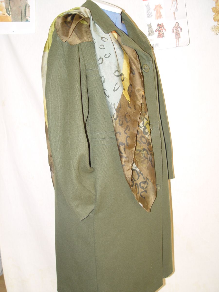 Manteau en belle étoffe de laine années 50 hiver, bien chaud sans être trop lourd, de marque Rodier je suppose (c'était la marque préférée de ma mère mais il n'a plus son étiquette) bien coupé / surpiqures / boutonnières passepoilées.