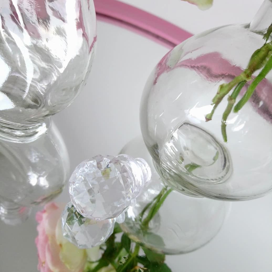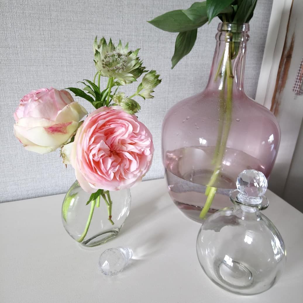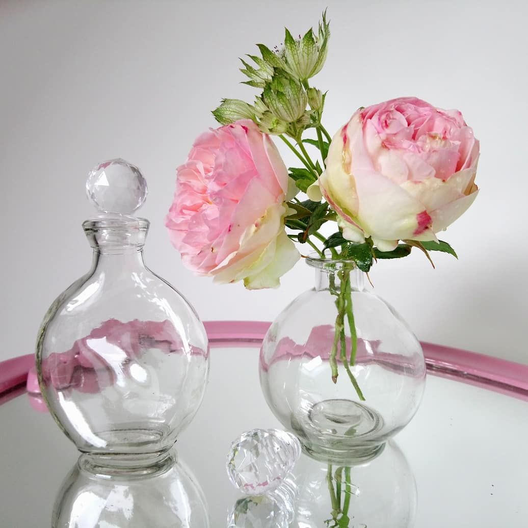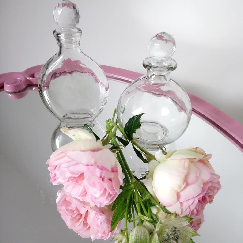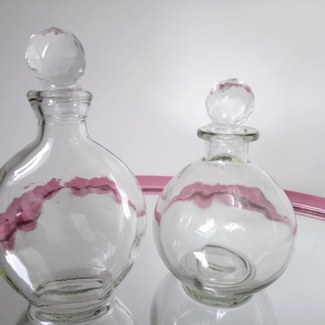 Duo de bouteilles de parfum accompagnés de leurs ravissants bouchons, peuvent servir de petits vases