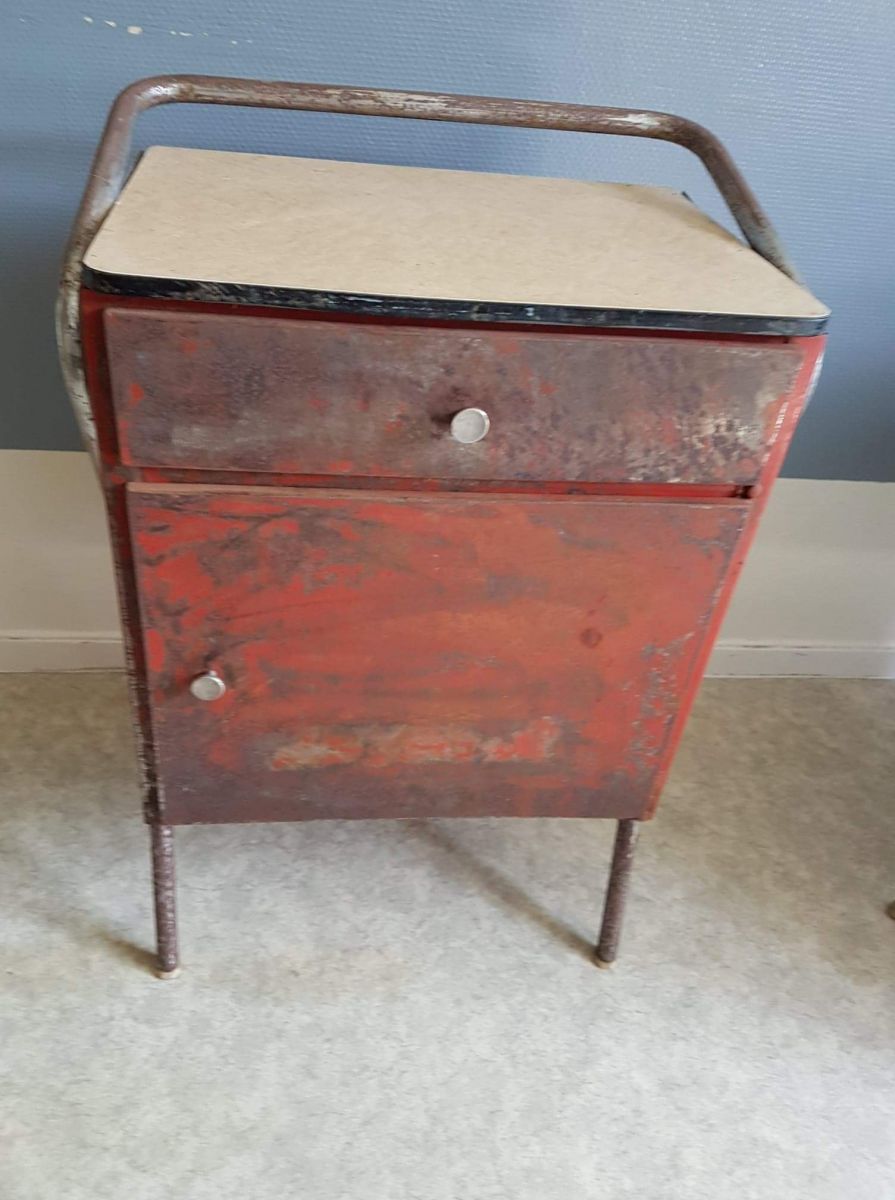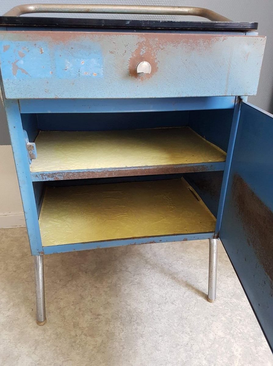 paire de chevets métal et tablette formica années 60 dans leur jus