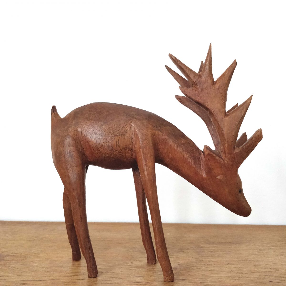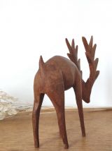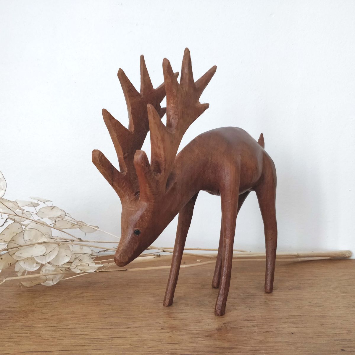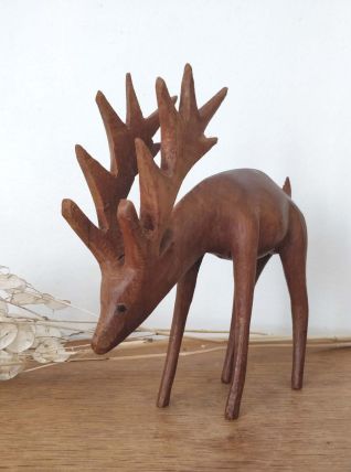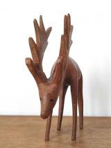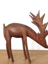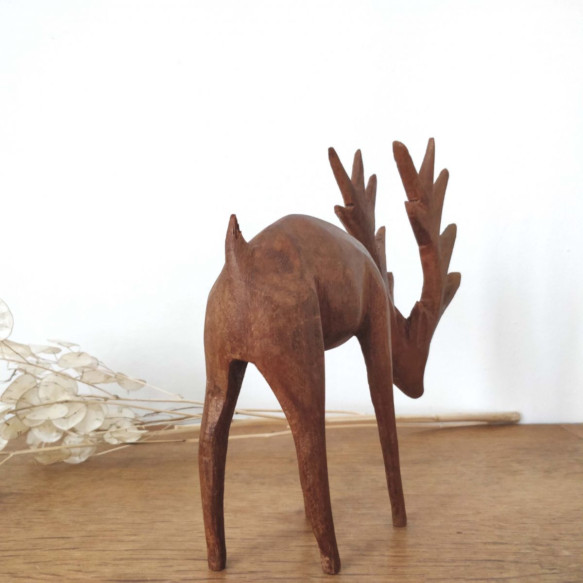 Joli statuette vintage d’un cerf en bois sculpté, bel état à part un petit éclat au niveau de la queue sans gravité.