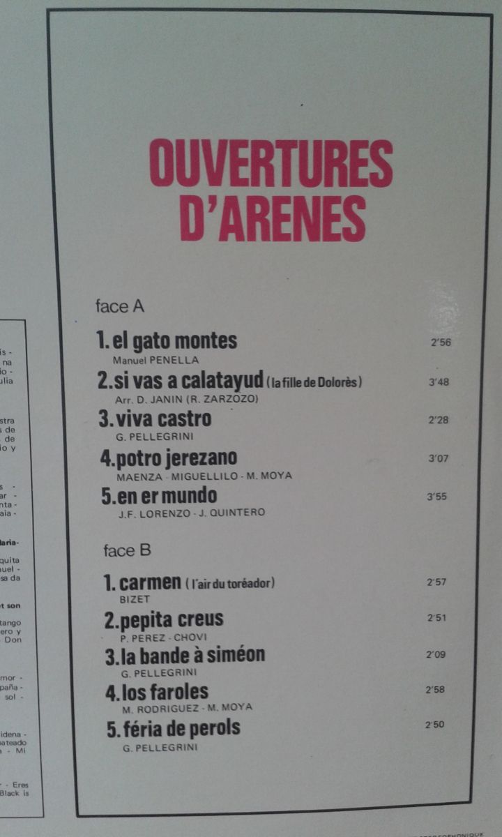 Vinyle 33T : Ouvertures d'Arènes.