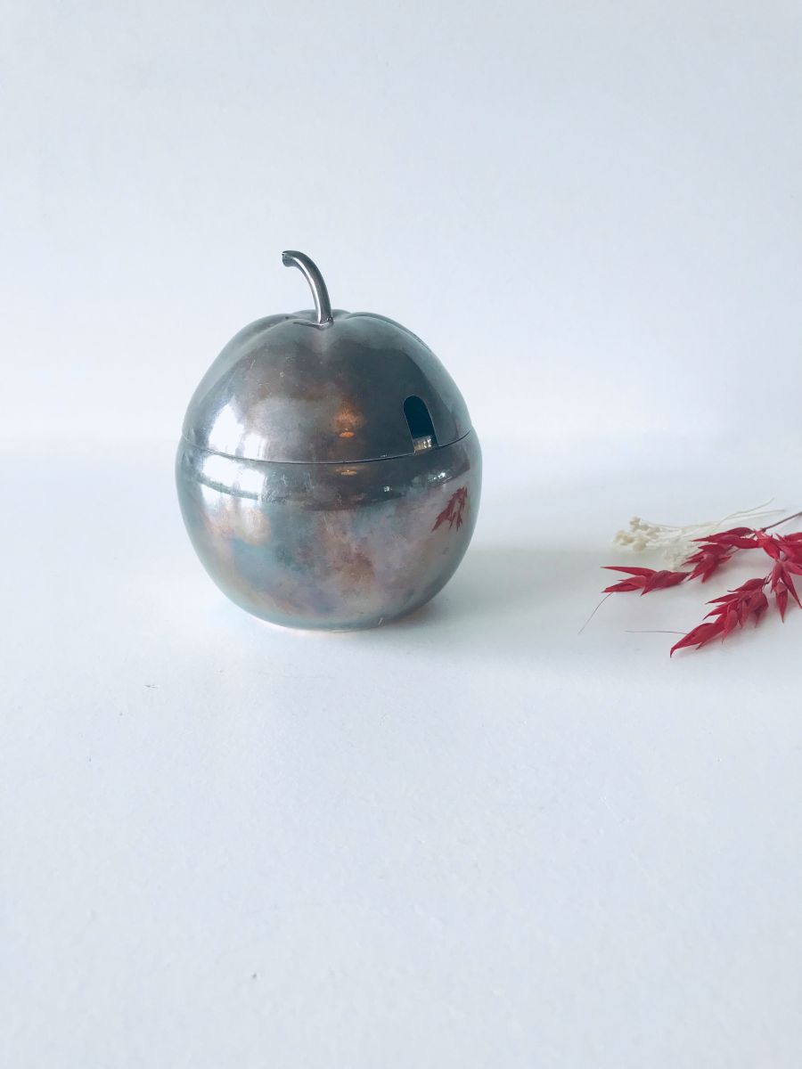 Très belle qualité pour ce sucrier ancien en forme de pomme en argent (EPNS) signé Spear and Jackson.