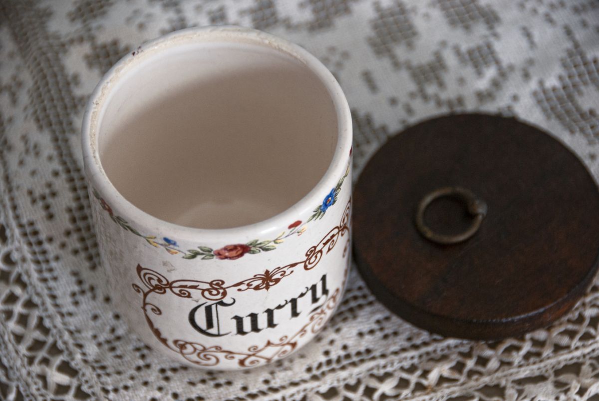 Lot de 3 pots à épices faïence couvercle bois anneau métal