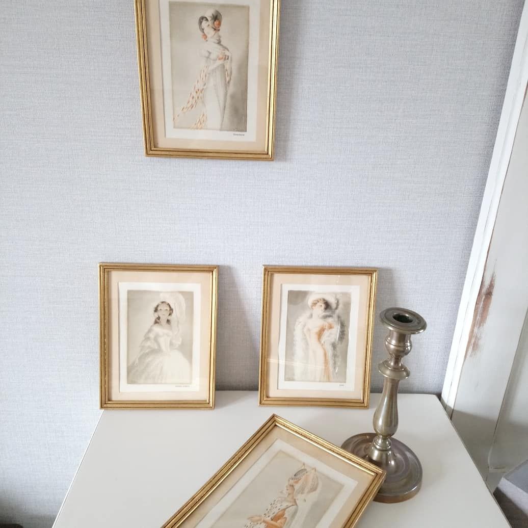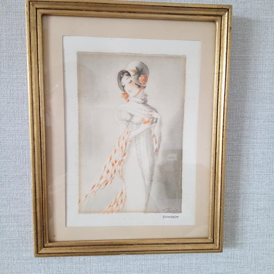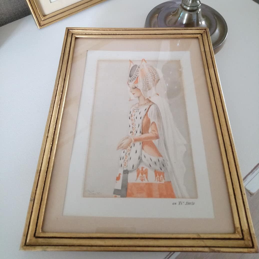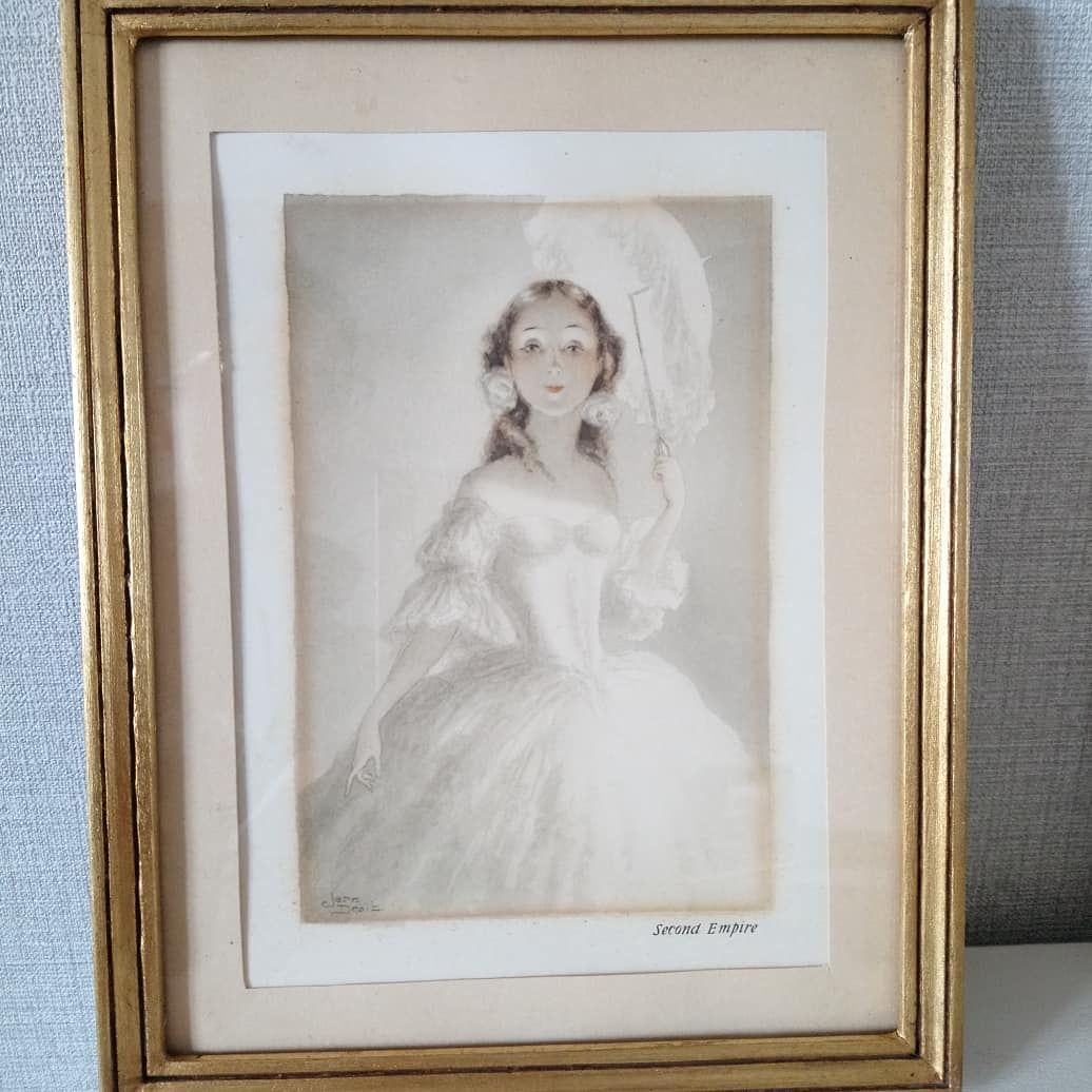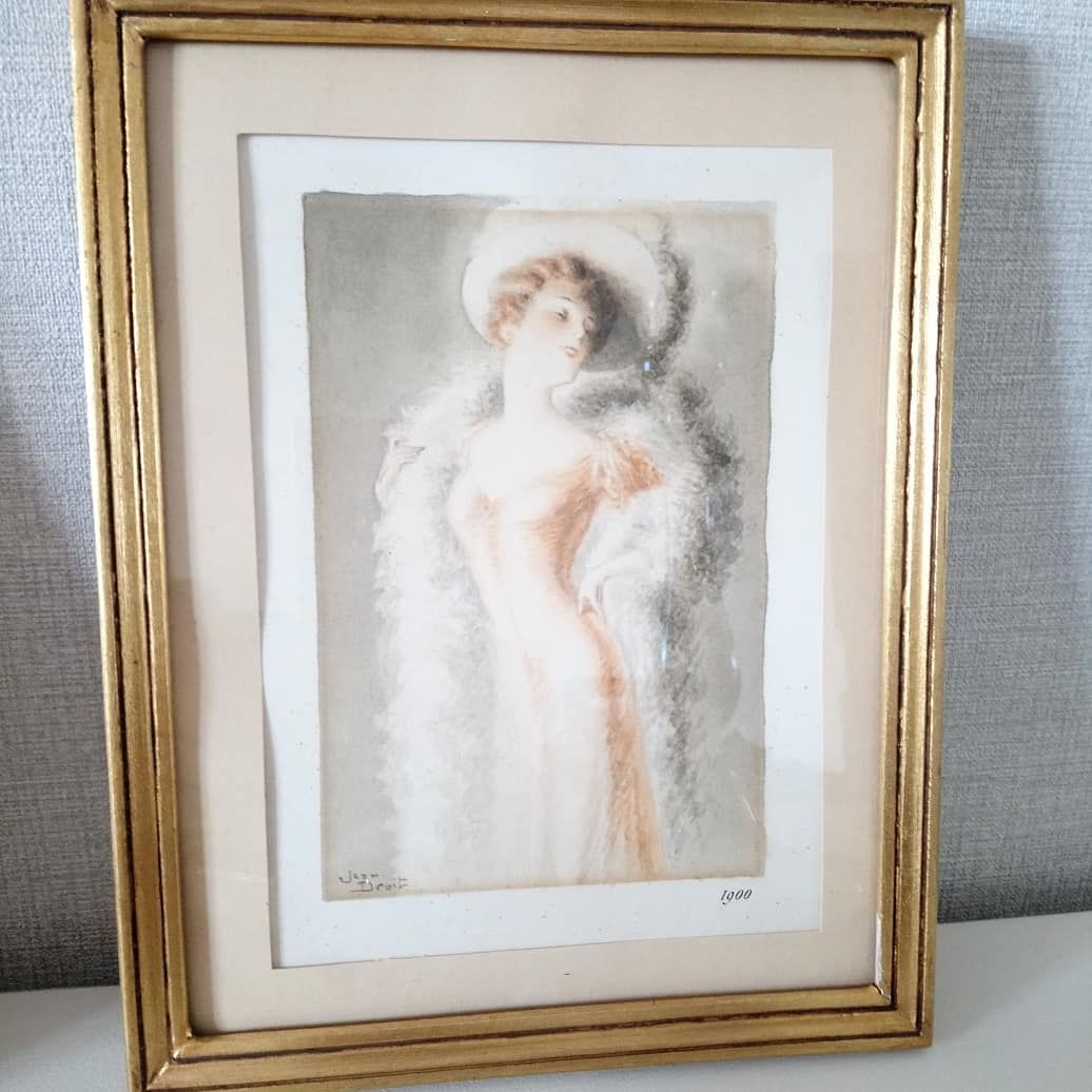Lithographies d aquarelles de Jean Droit ! Jolies dames de différentes époques, les cadres sont en bois dorés.