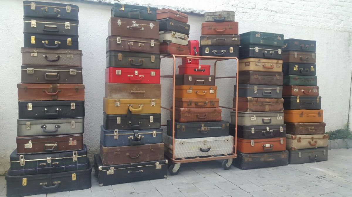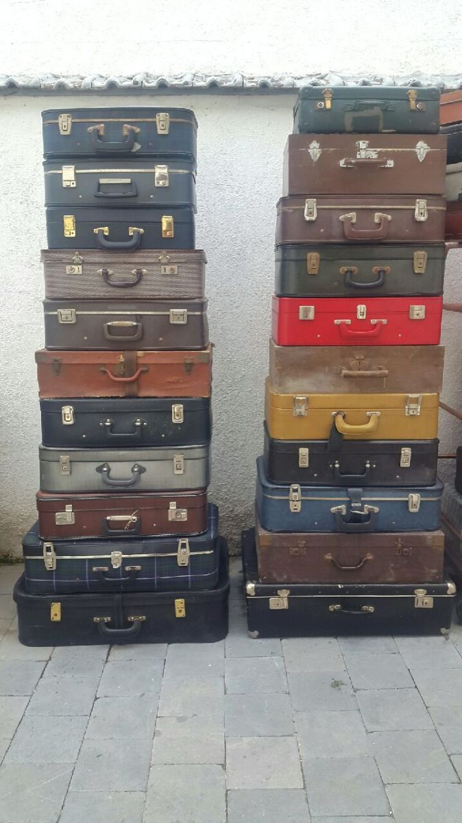 Décoration pour mariage, voiture ancienne, pièce de théâtre, pin up, etc. Carton, bois, tissu, cuir. Voyage, ancien, rétro, décoration, mariage, urne, noces, voiture de collection, cinéma, porte bagage, malle, caisse, cantine.