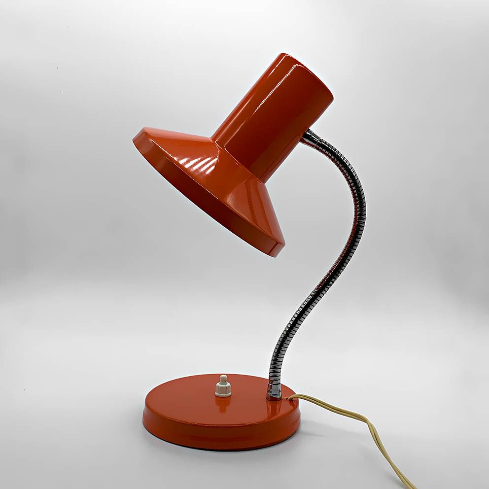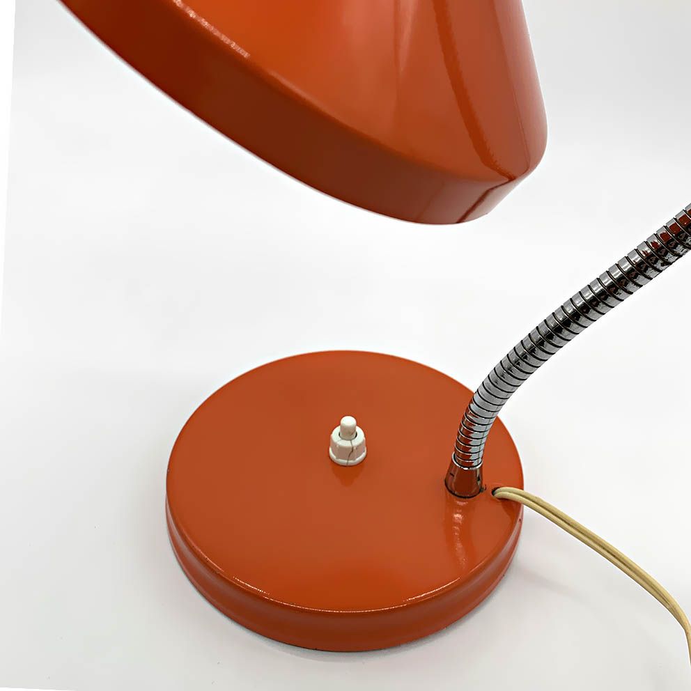 Base métal laqué orange, abat-jour orientable sur tige métal chrome.