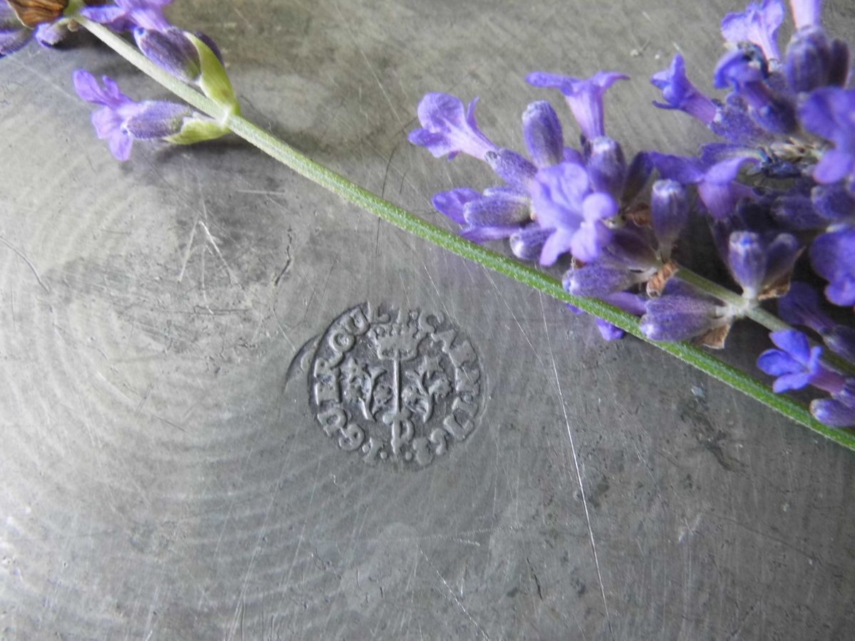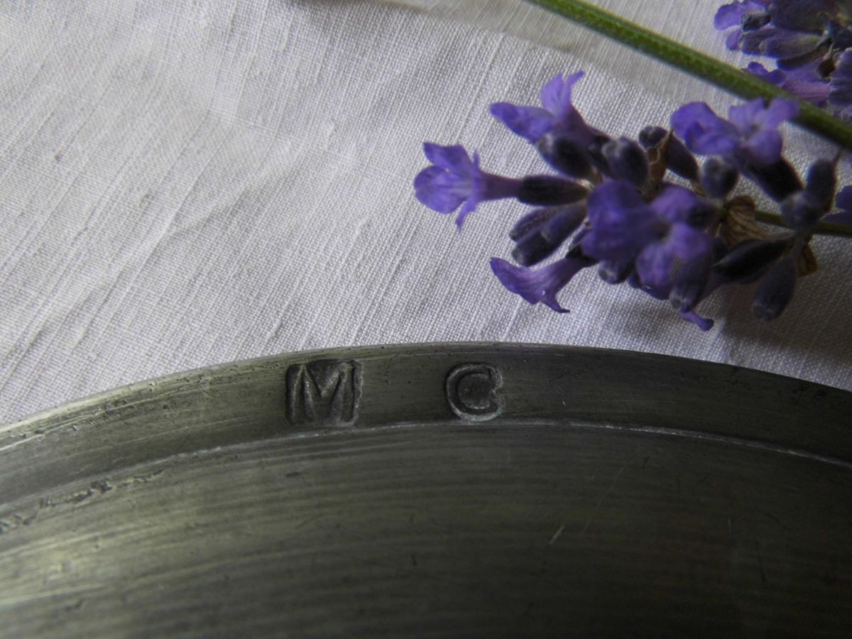 Poinçon apposé de Jean-Jacques GUEROULT reçu maître étainnier à Caen vers 1750 : poinçon à l'épée couronnée / "I.GUEROULT.CAEN / 176? " + 2 poinçons en bordure : voir photo 5.