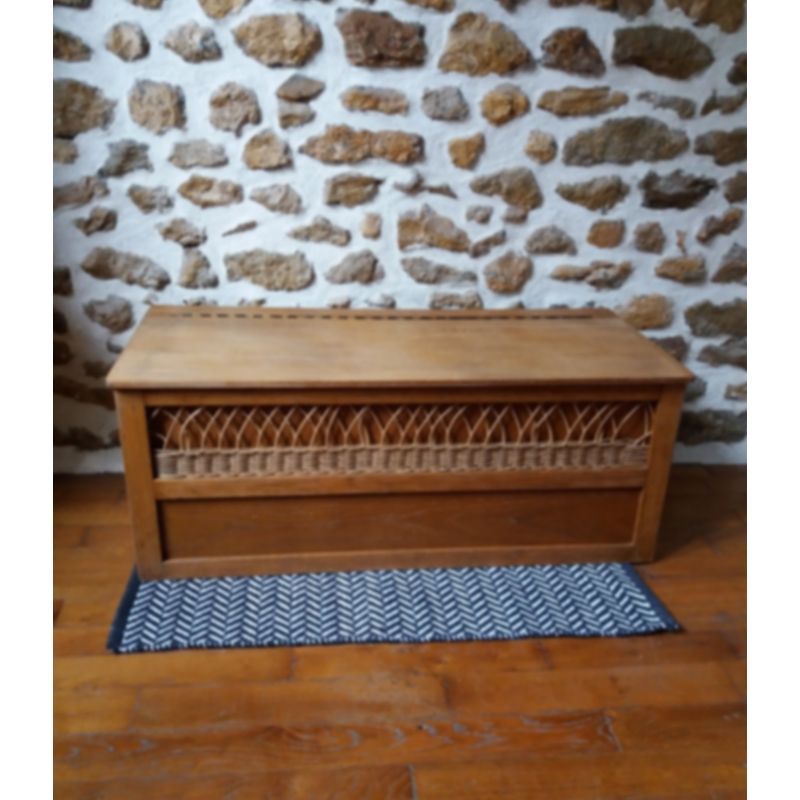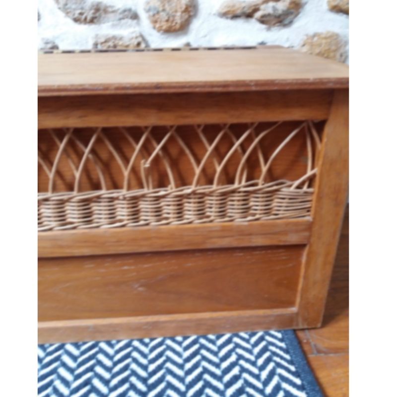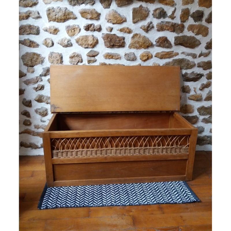 Il est typique des années 50, en hêtre et agrémenté de rotin. Sa structure est robuste .