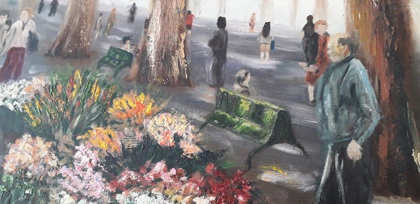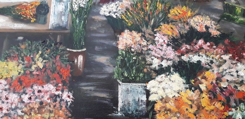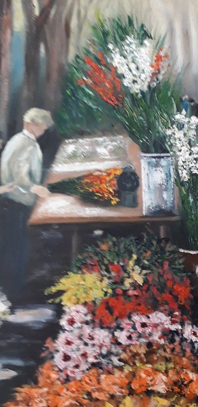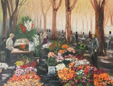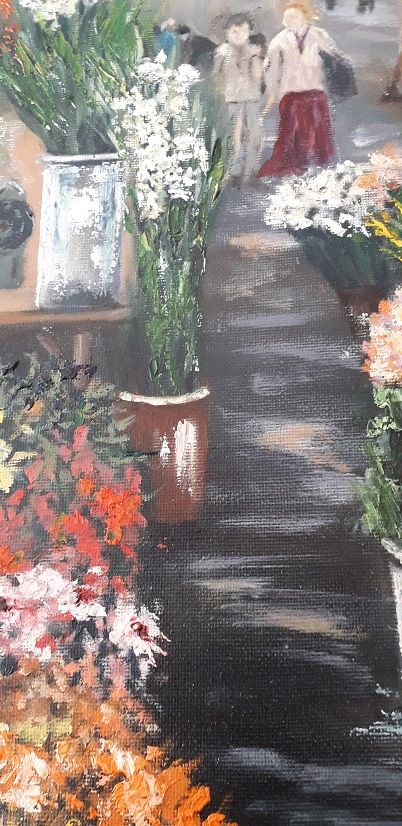 Tableau - Peinture a l'huile sur toile représentant le marché de Beziers