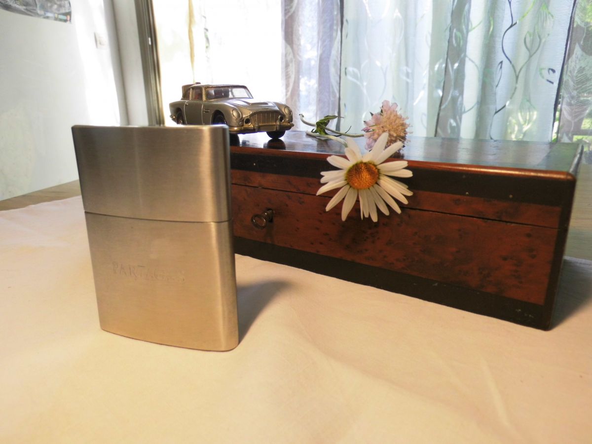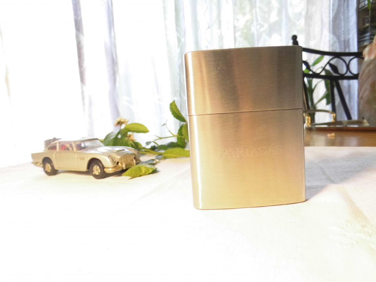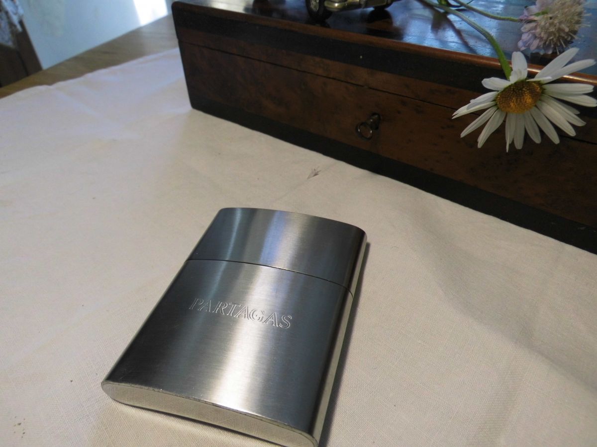 Ancien étui de poche pour cigarillos ou cigarettes en métal brossé et gravé, au nom de la légendaire marque de cigares cubains PARTAGAS .