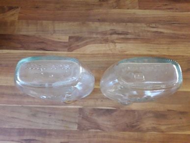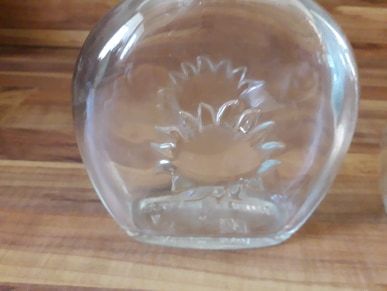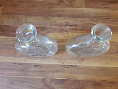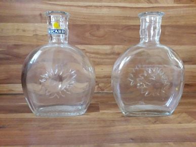 2 carafes RICARD Soleil, modèle déposé, aucun manque ou fêlure, légères traces de calcaire, 18×13 cm