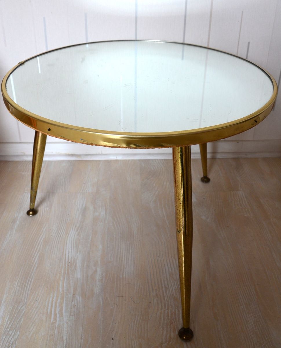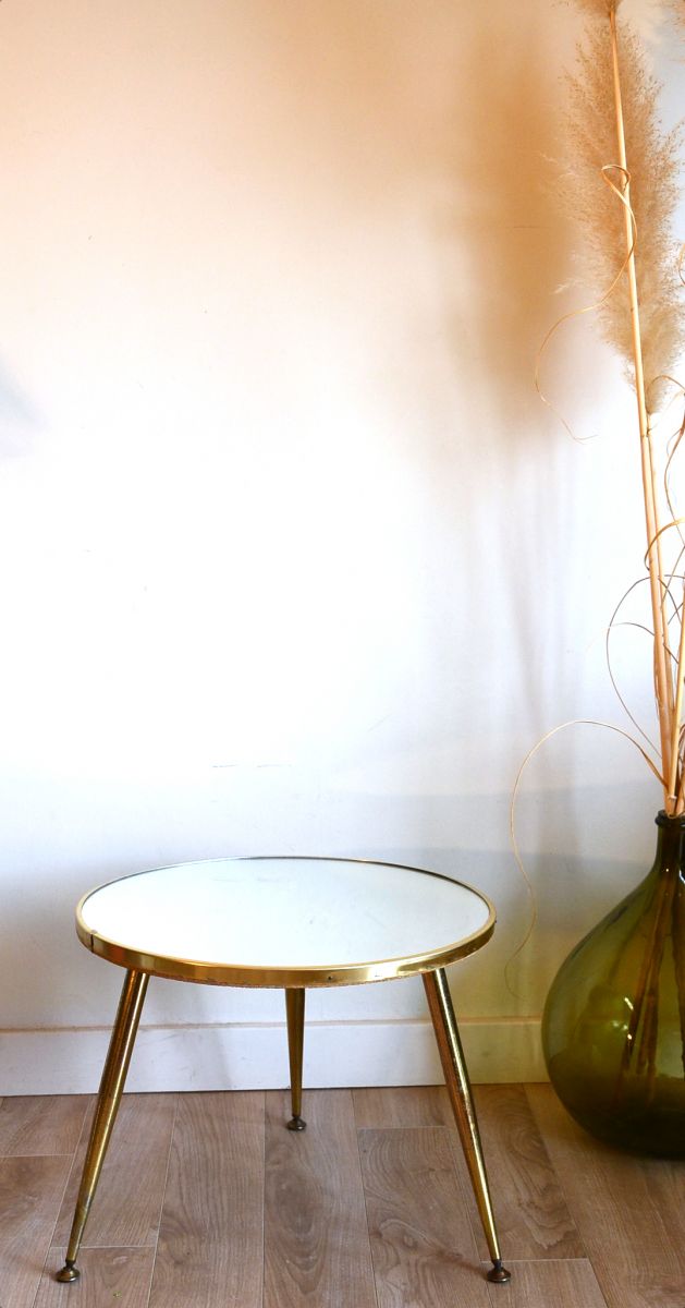 Table miroir vintage année 60, pieds compas ( 3 pieds).Original avec son miroir.