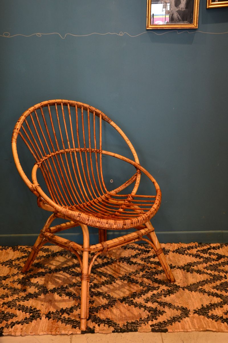 Jolie fauteil en rotin année 60, à revernir légèrement ou pas.