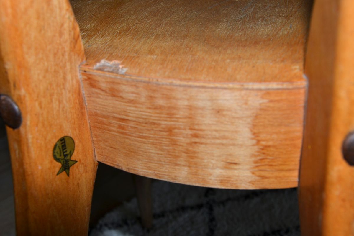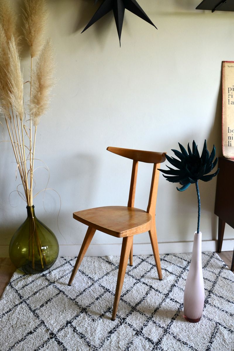 Chaise en bois "Stella", année 50-60, dans son jus à restaurer ou pas