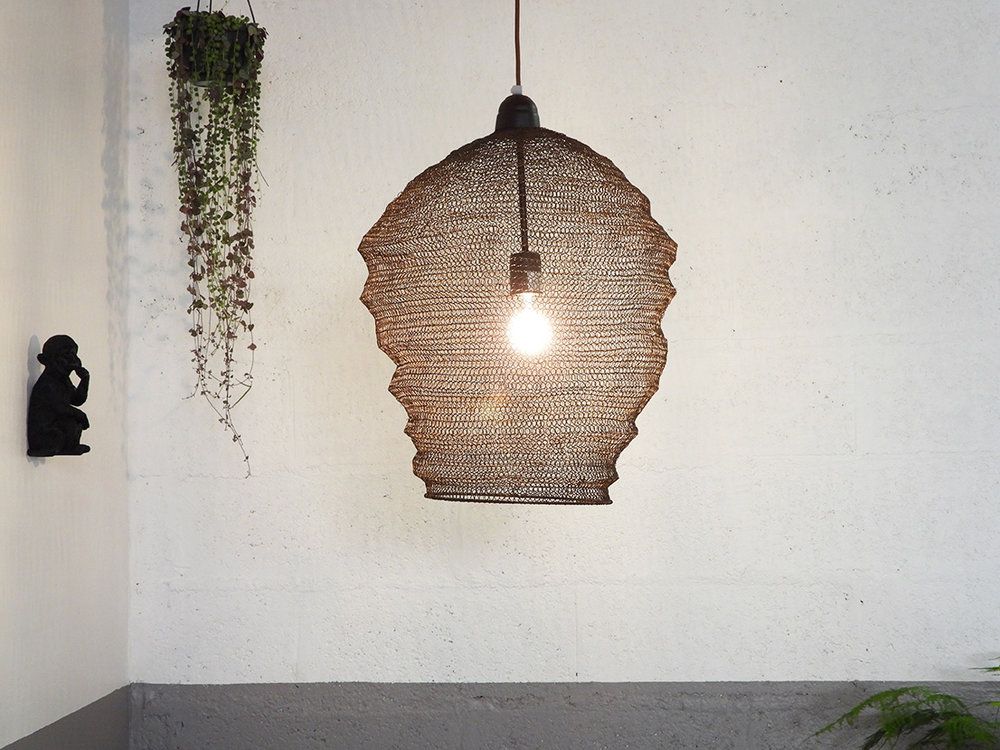 "Cette suspension en métal tressé a une forme irrégulière et presque sculptée ce qui lui donne un aspect quasi organique. On a eu le coup de coeur pour sa structure aérienne et légère qui offre un éclairage doux et tamisé".