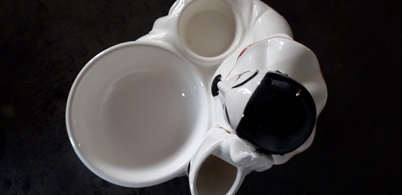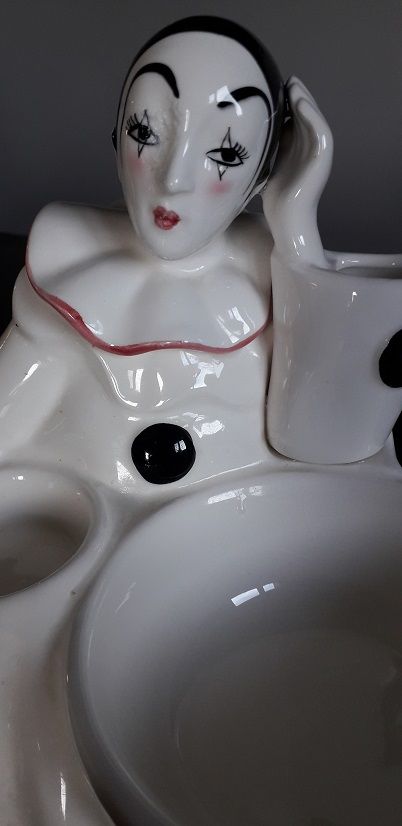 Original nécessaire à raser Pierrot en porcelaine peint à la main.