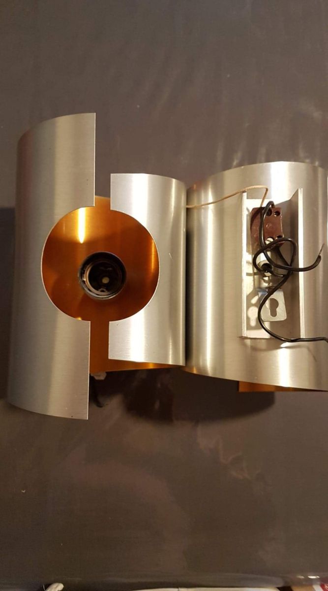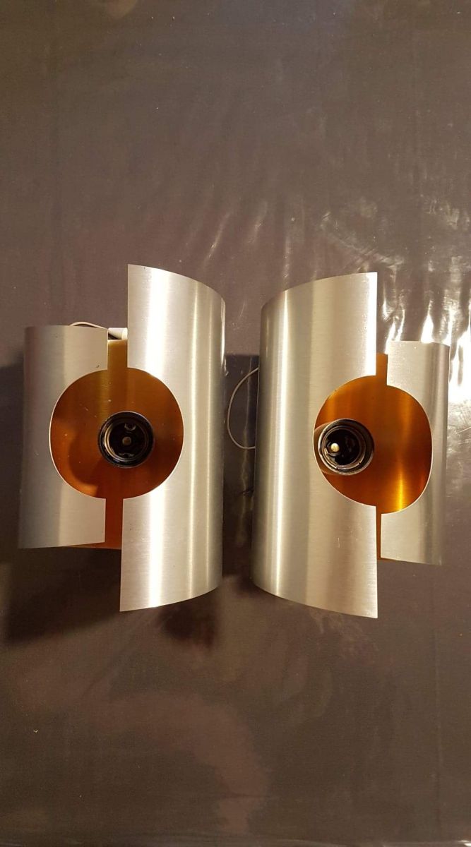 paire d'appliques vintage métal brossé et intérieur orange