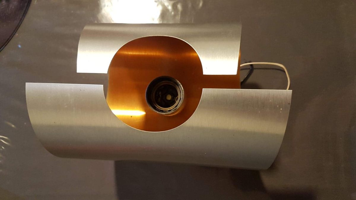 paire d'appliques vintage métal brossé et intérieur orange cuivré