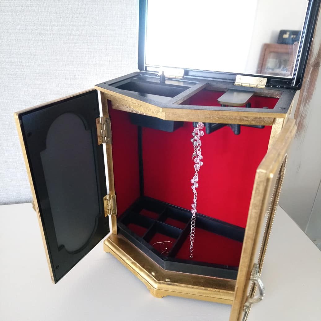 En forme de petit meuble cette jolie boîte à bijoux musicale trouvera sa place dans une chambre chic.
