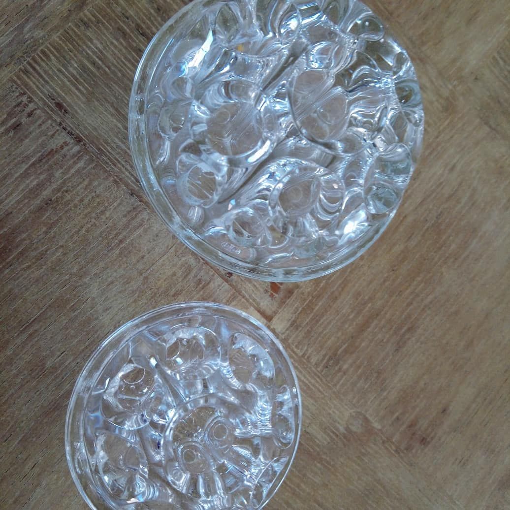 Paire de solifores en verre fabrication Française. Un 19 trous et le petit 9 trous. Vous pouvez y déposer fleurs, pinceaux de maquillage ou crayons. Plus élégants que nos pots traditionnels.