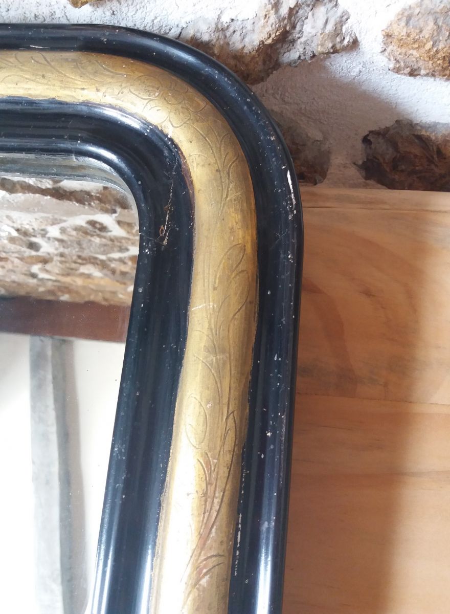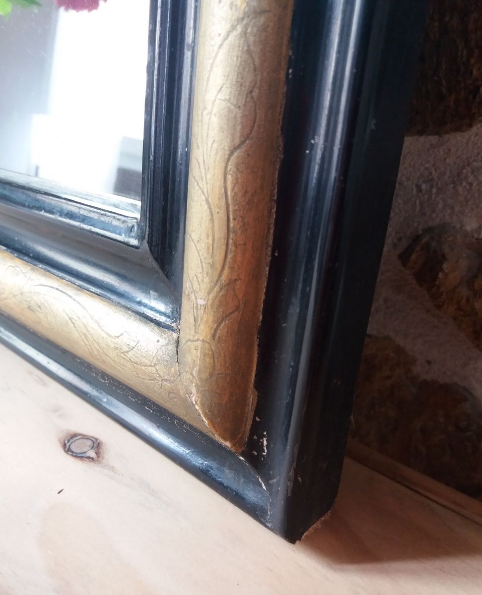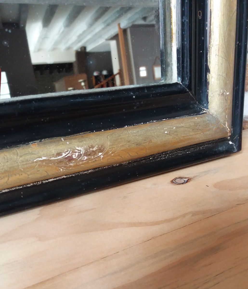 Miroir Louis Philippe en bon état général avec des traces du temps visible sur les photos.