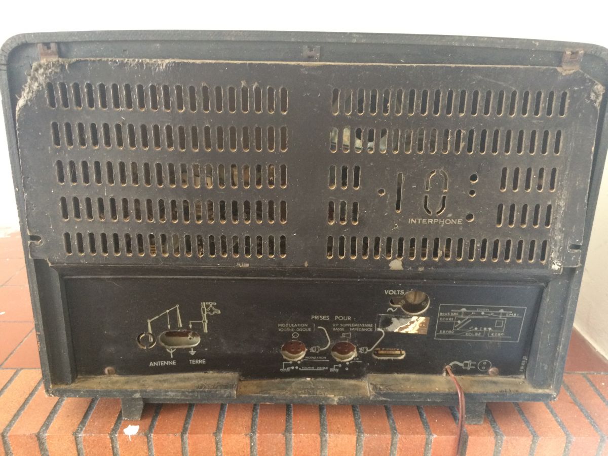 La radio est en bon état de conservation sauf son arrière qui est un petit peu abîmé avec notamment le câble d'alimentation qui est coupé. Fonctionnement à tester avec un nouveau câble. Idéal pour une déco avec une touche vintage ou collection.