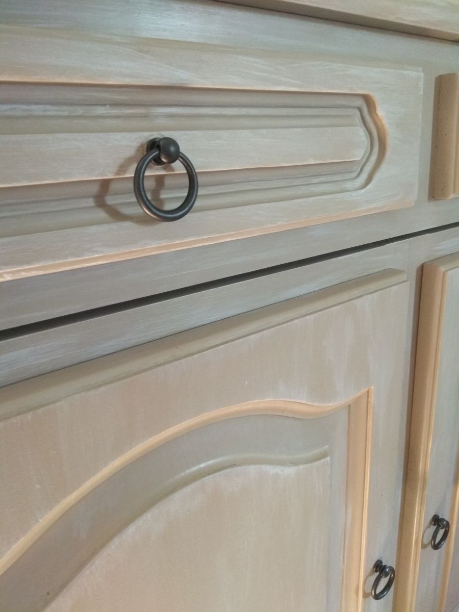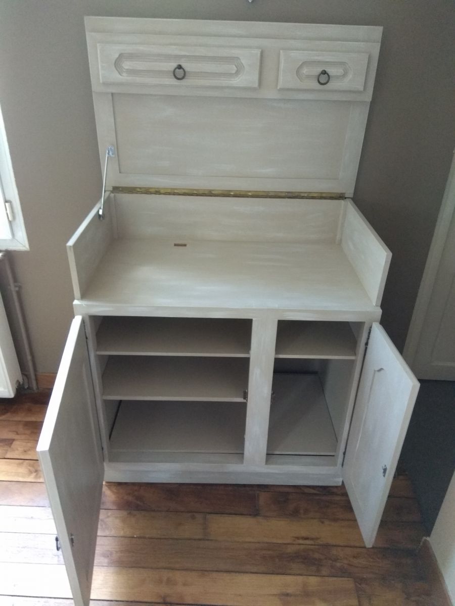 Voici ma dernière réalisation, un très joli bureau couleur café au lait avec un effet brossé blanc