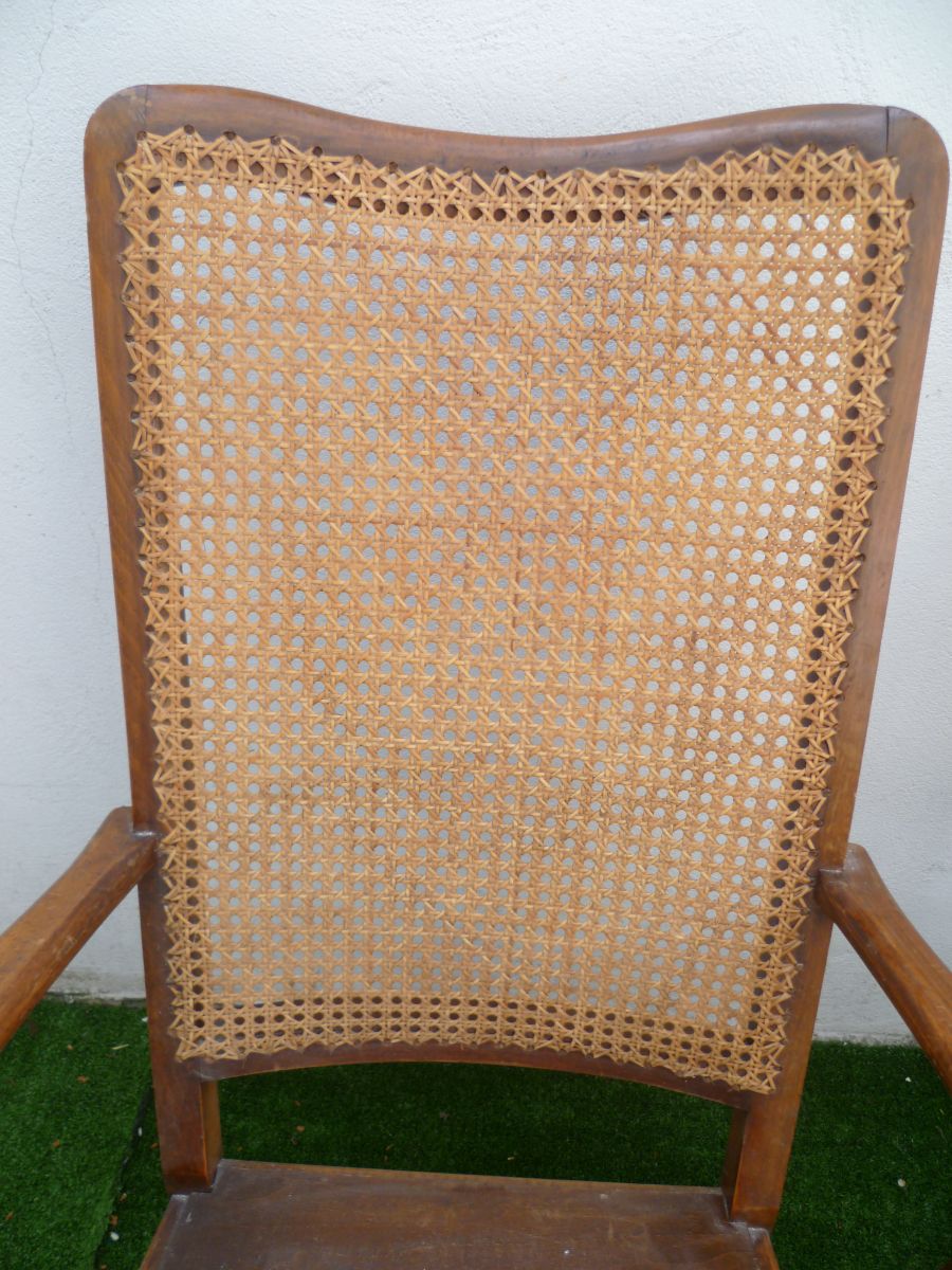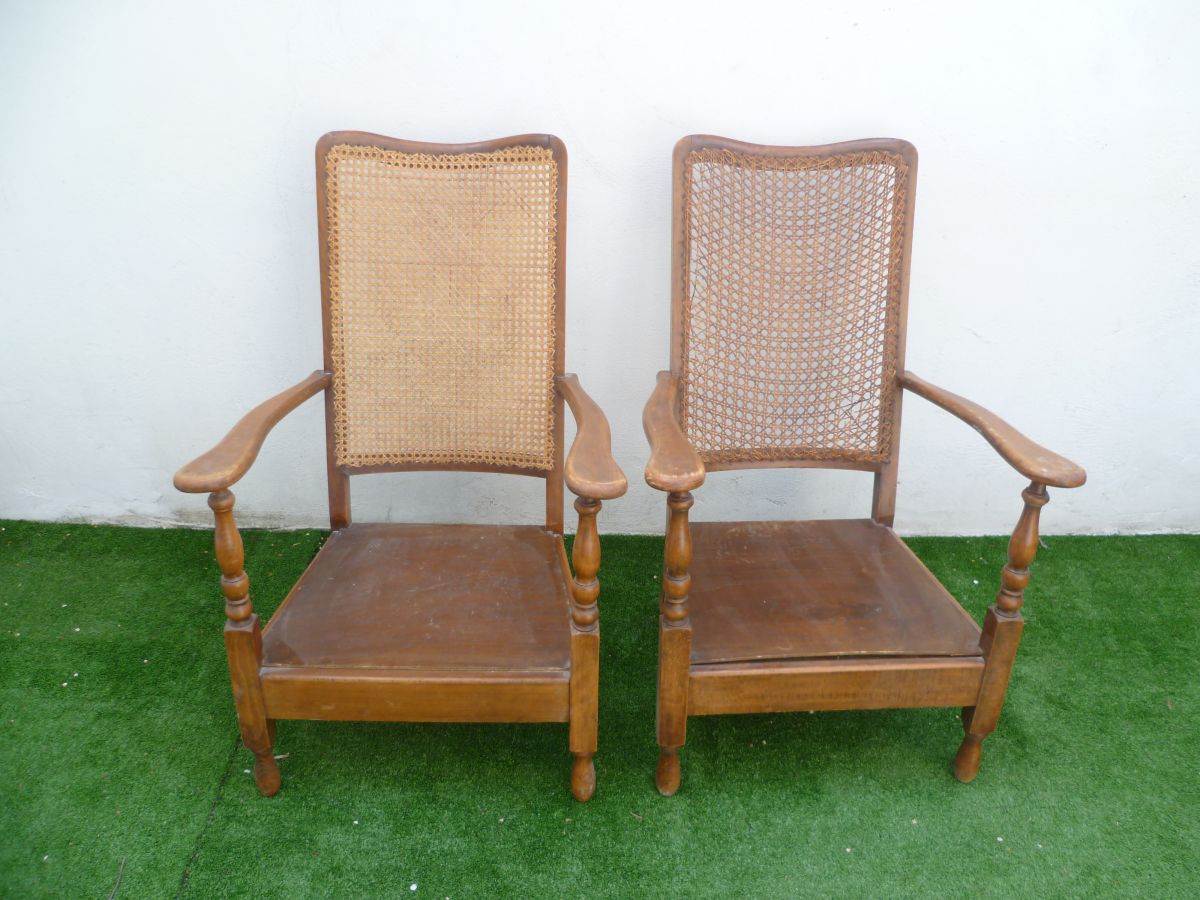 Fauteuils "nourrice" en bois très bon état ( bois préservé des insectes xylophages) cannage neuf pour l'un et d'origine qui commence à s'abîmer légèrement pour l'autre. Possédaient des coussins de tapissier en trop mauvais état pour être conservés. Mesures: dossier 65cm de haut, assises à 25cm du sol, largeur 60cm et profondeur 55cm. 200€ les deux ou 100€ le rénové et 90€ l'autre.