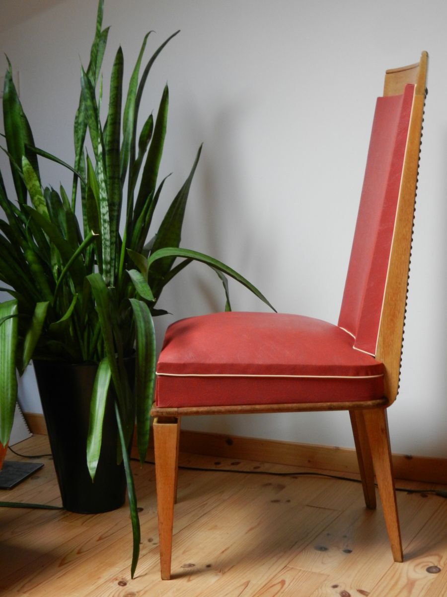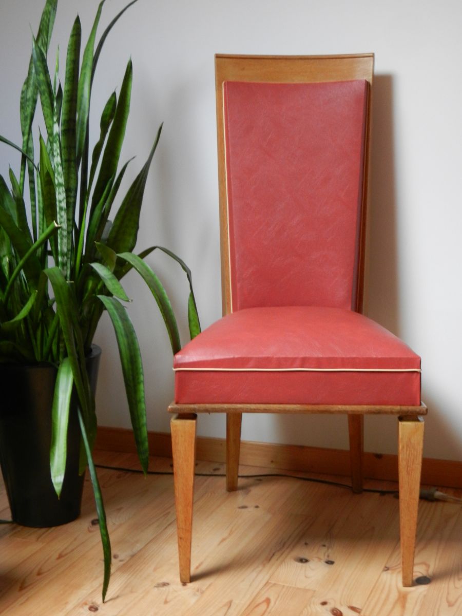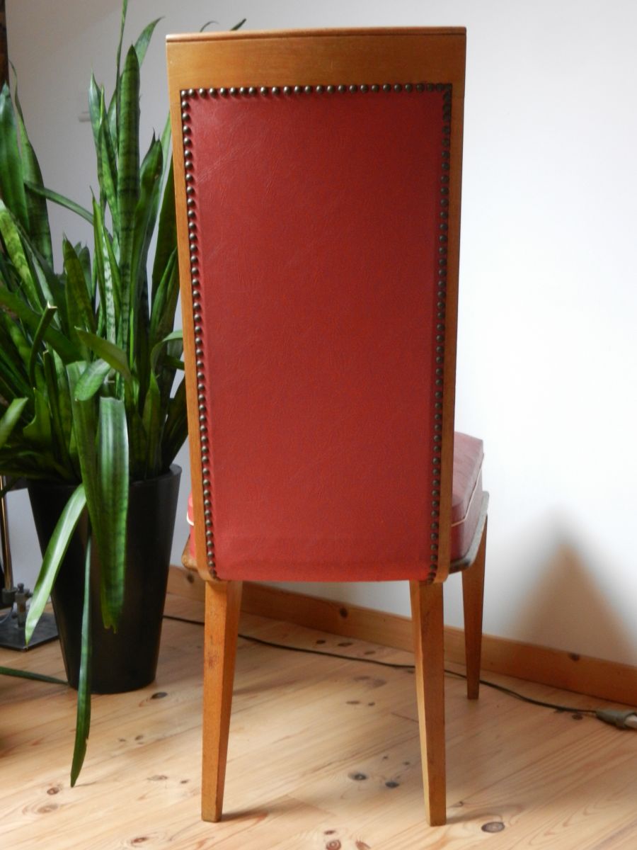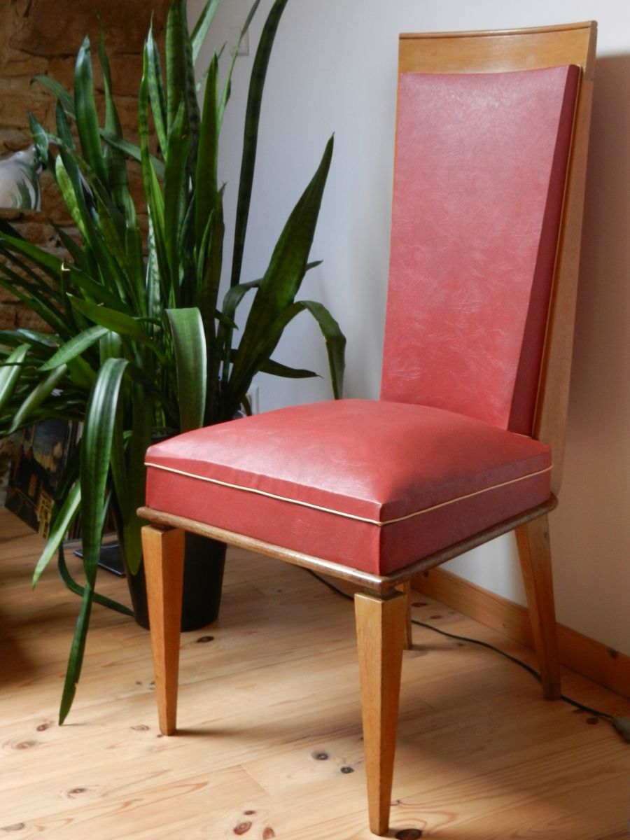Parfait état pour ces 6 chaises en chêne clair, assise et dossier en simili cuir rouge. Vente à l'unité ou en lot. A voir sur Lyon ou dans l'ain à proximité d'ambérieu en bugey...